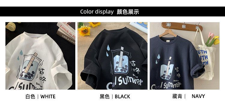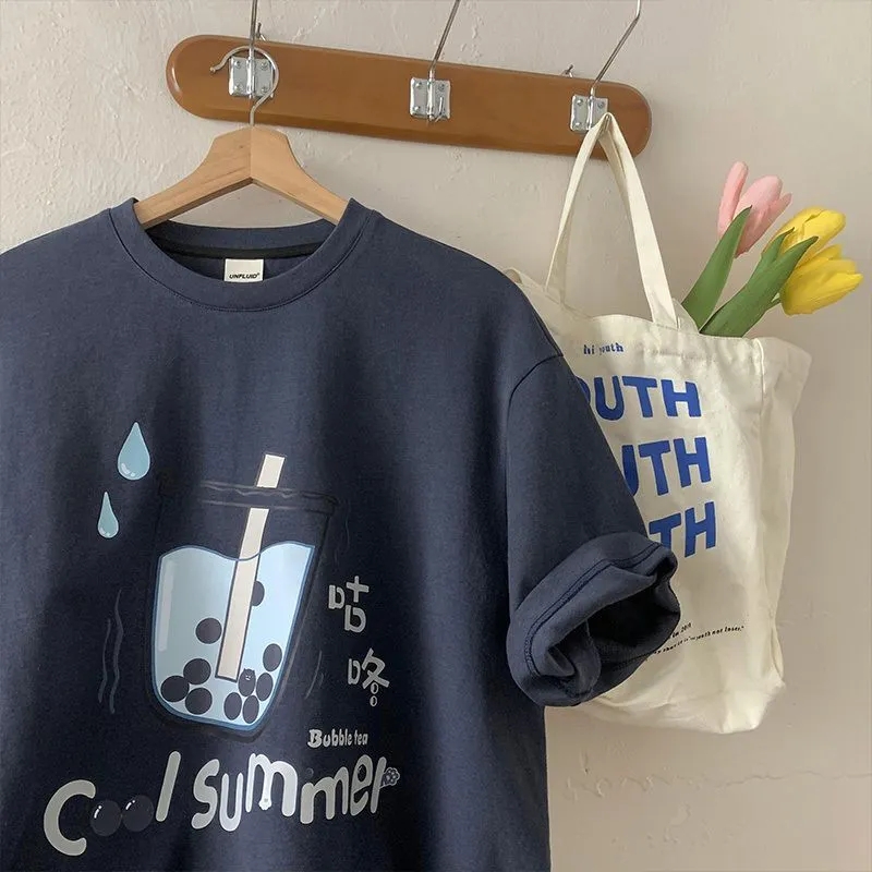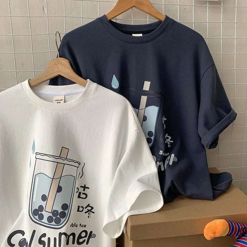 Bubble Milk Tea Print Short Sleeve T-shirt