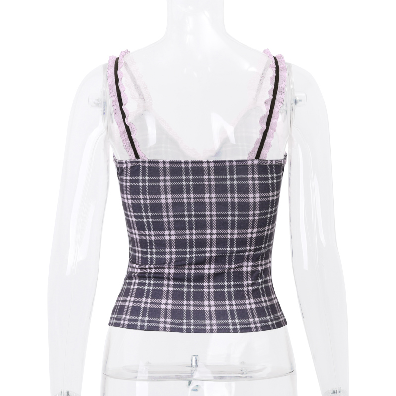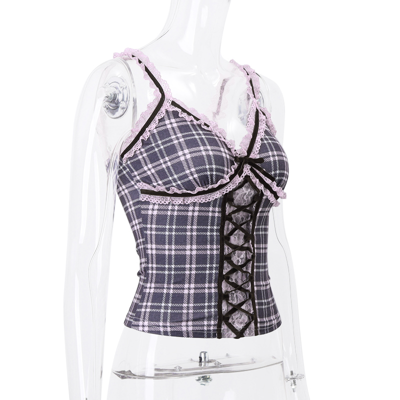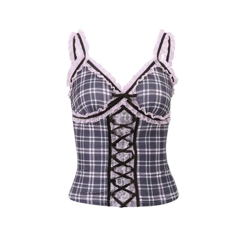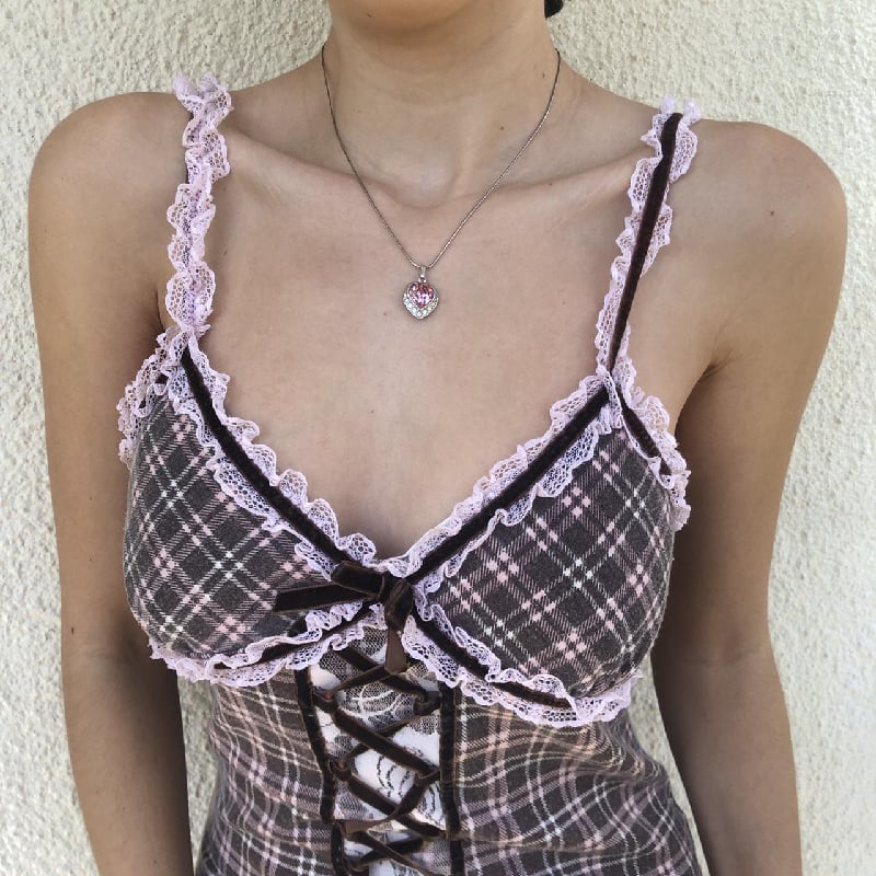 Pink Plaid Lace Patchwork Camisole