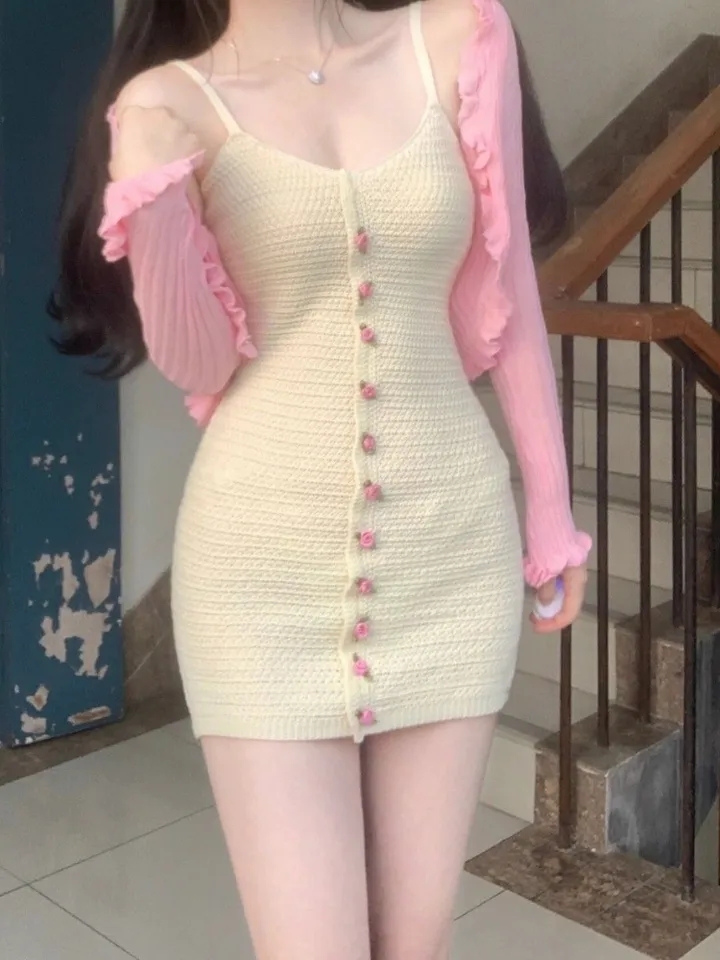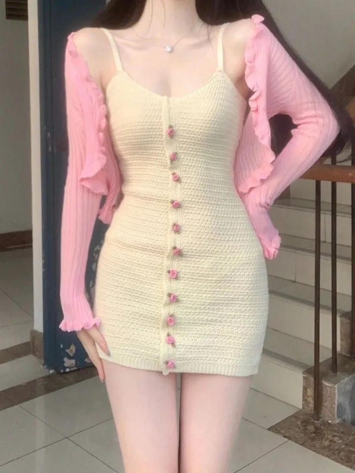 100% Brand New and High Quality . Material: Polyester, Cotton . Size: As shown on size chart. Includes: Cardigan + Dress.