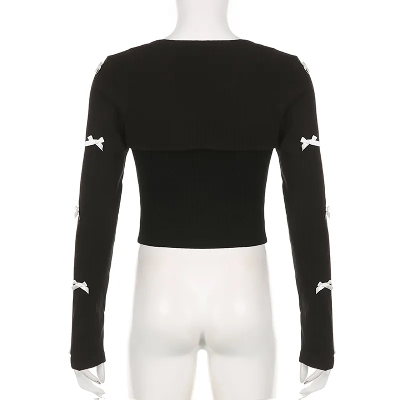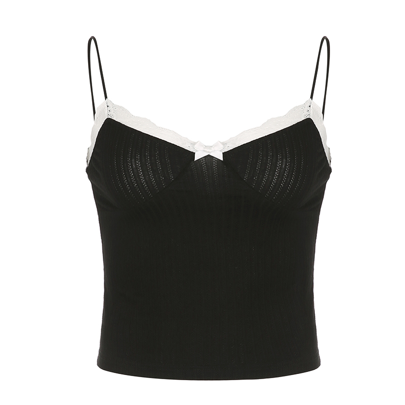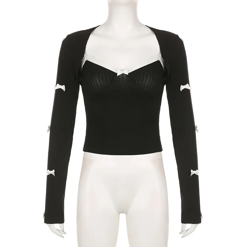 2PCS Patchwork Bow Lace Camisole + Knit Cardigan