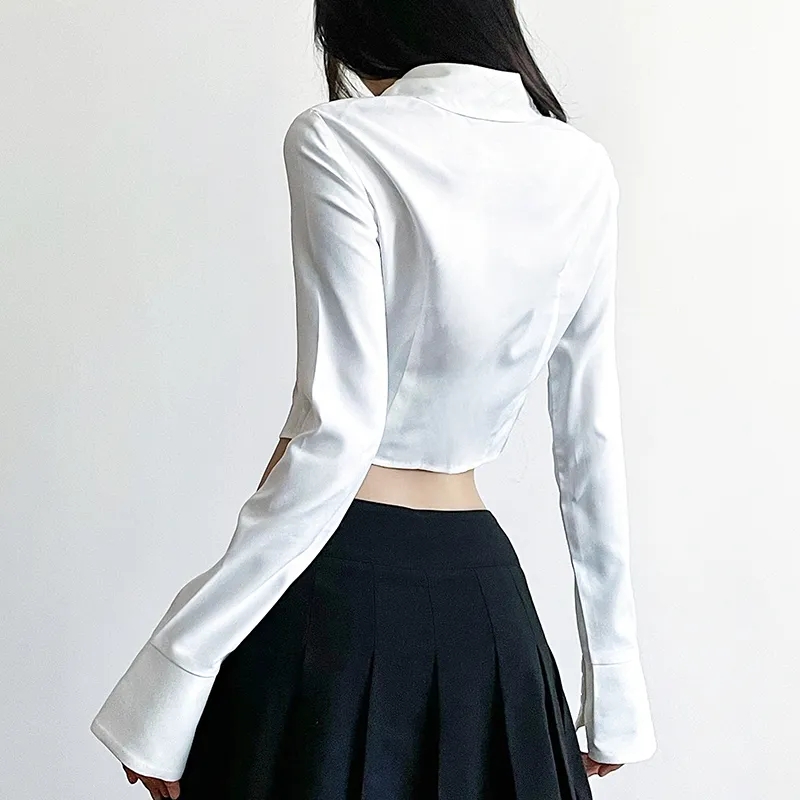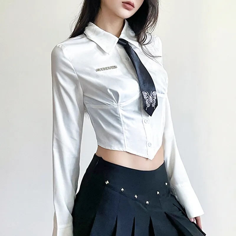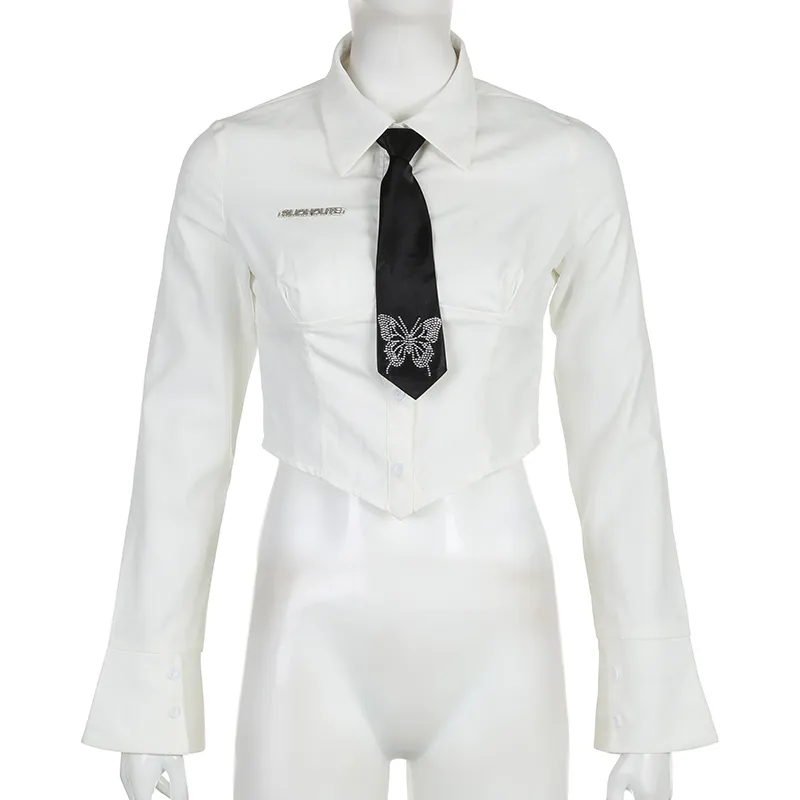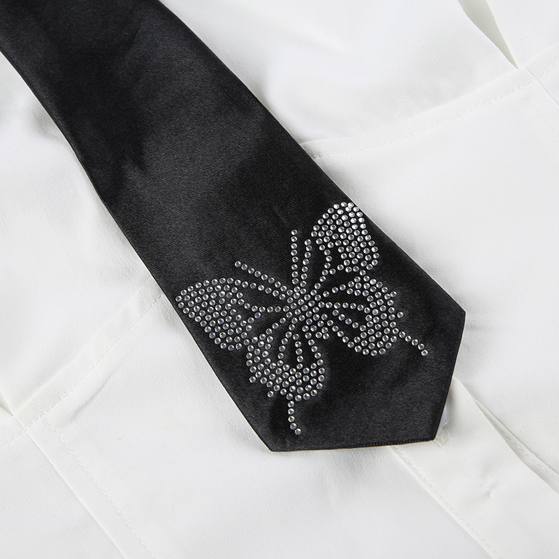 White Butterfly Rhinestone Tie + Long Sleeve Shirt Set