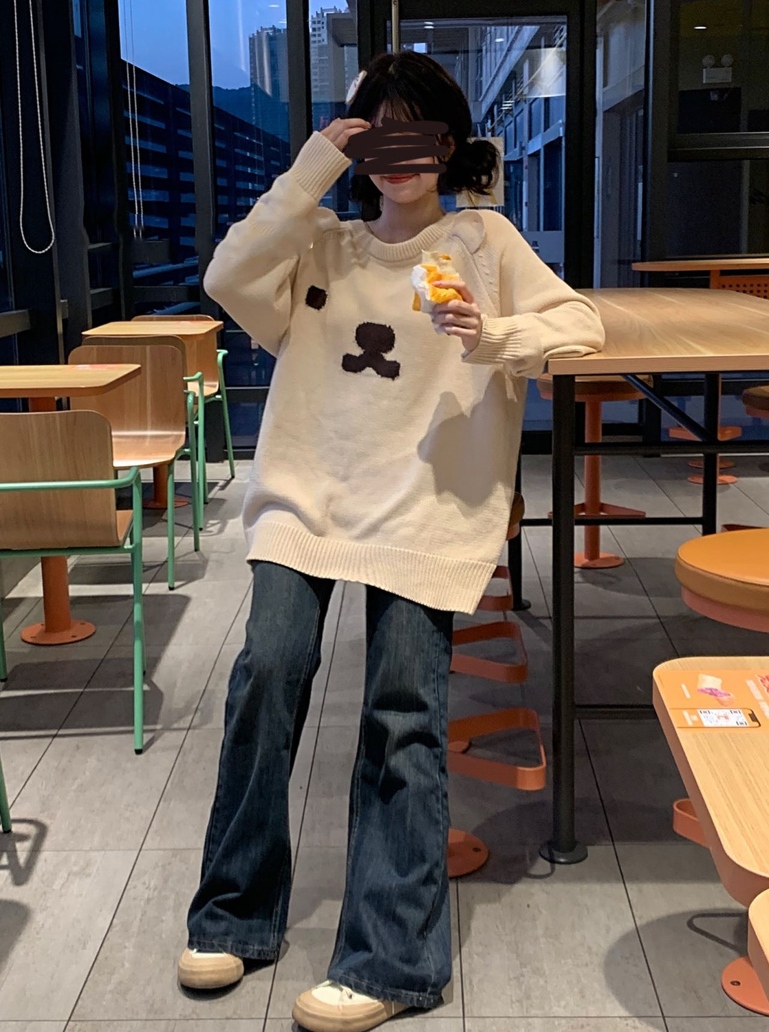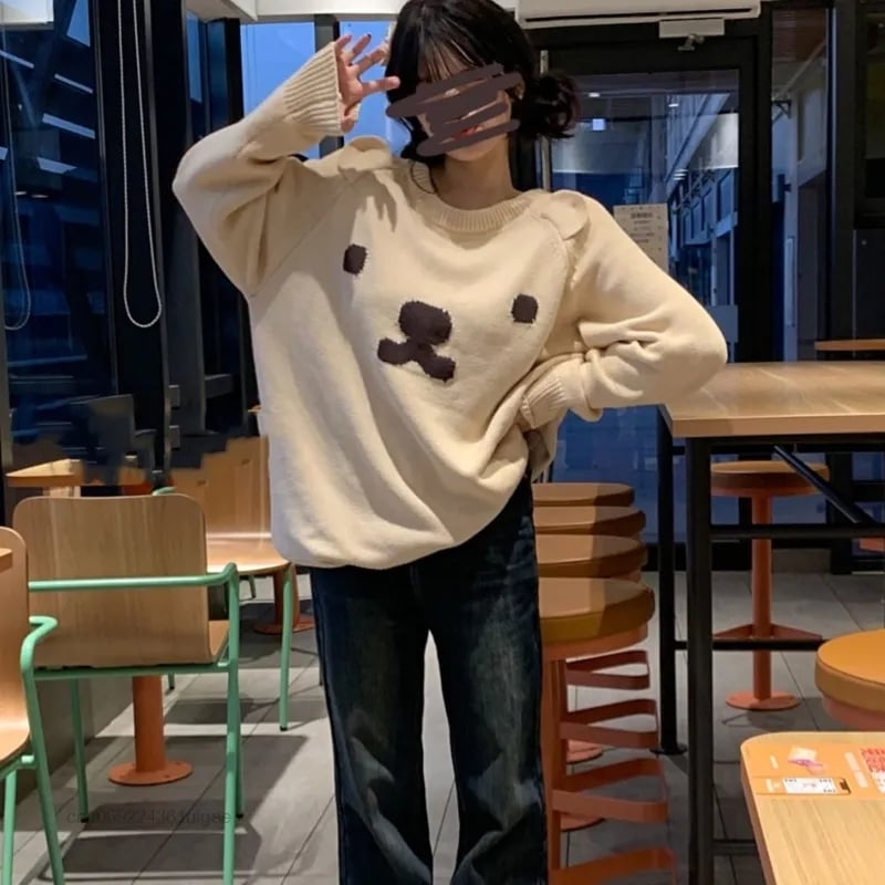 Cute Vintage Preppy V Neck Oversized Sweater Long Sleeve Shirt Pullover Hoodie Sweatshirt E-Girl Kawaii Korean Japanese Harajuku Retro Streetwear
