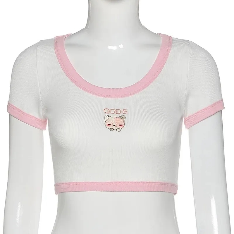 Cute Aesthetic Black Anime Girl Cartoon Print Short Sleeve Shirt Oversized Loose T-shirt Top Goth E-Girl Kawaii Korean Japanese Harajuku Streetwear