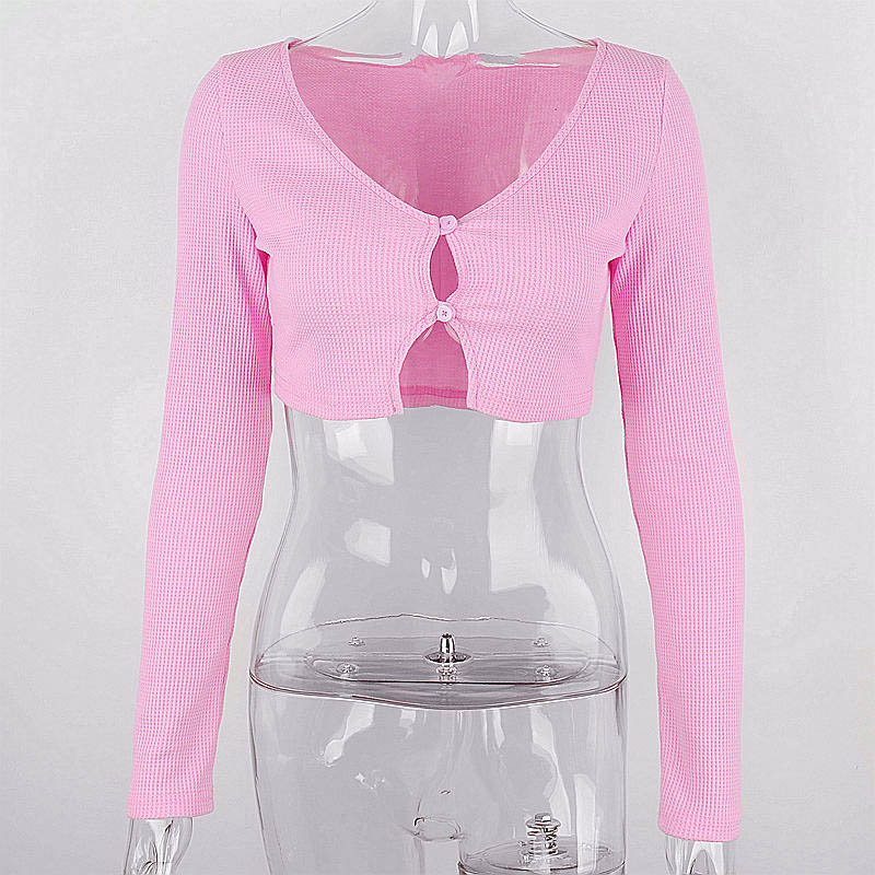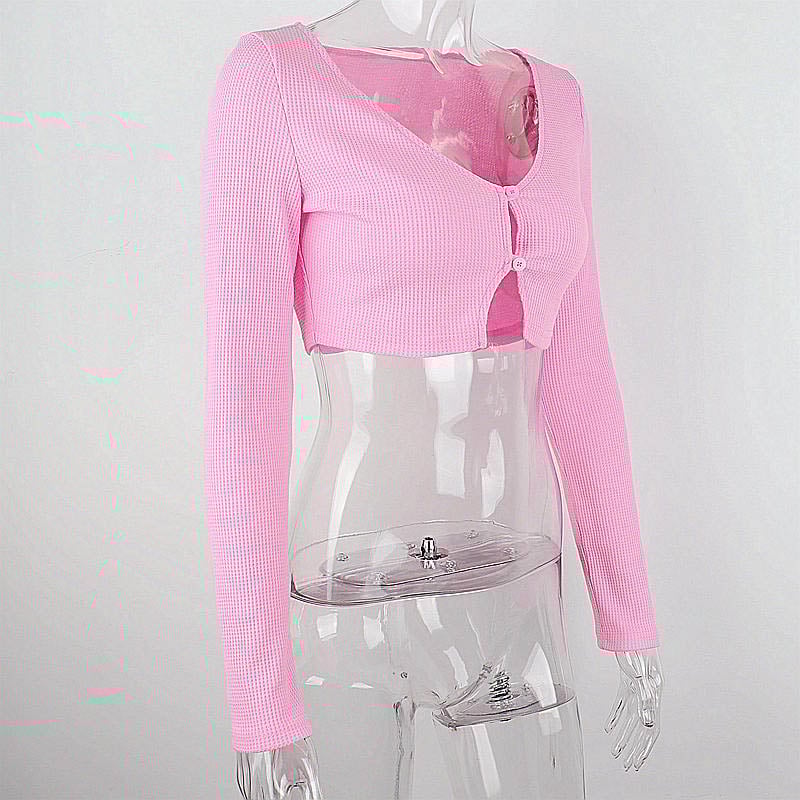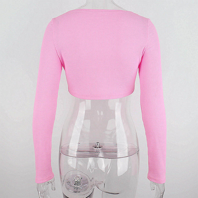 Pink Ribbed Long Sleeve Crop Top