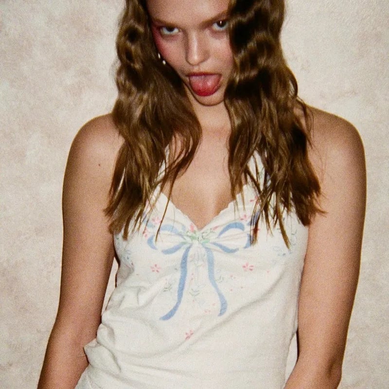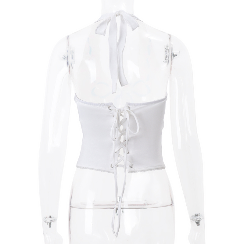 Bow Backless V Neck Halter Top