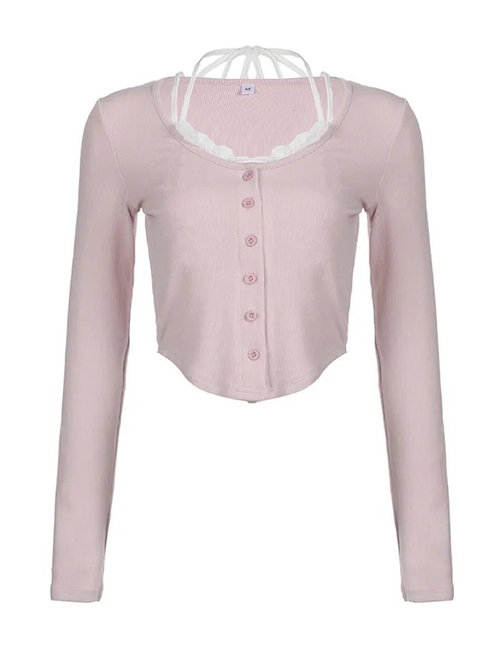Cute Sexy 2pcs Moon Print Long Sleeve T-shirt Crop Top With Bra Camisole Summer Aesthetic Casual E-Girl Kawaii Korean Japanese Harajuku