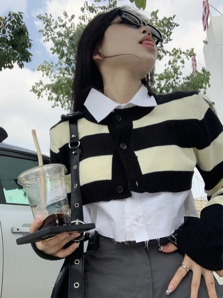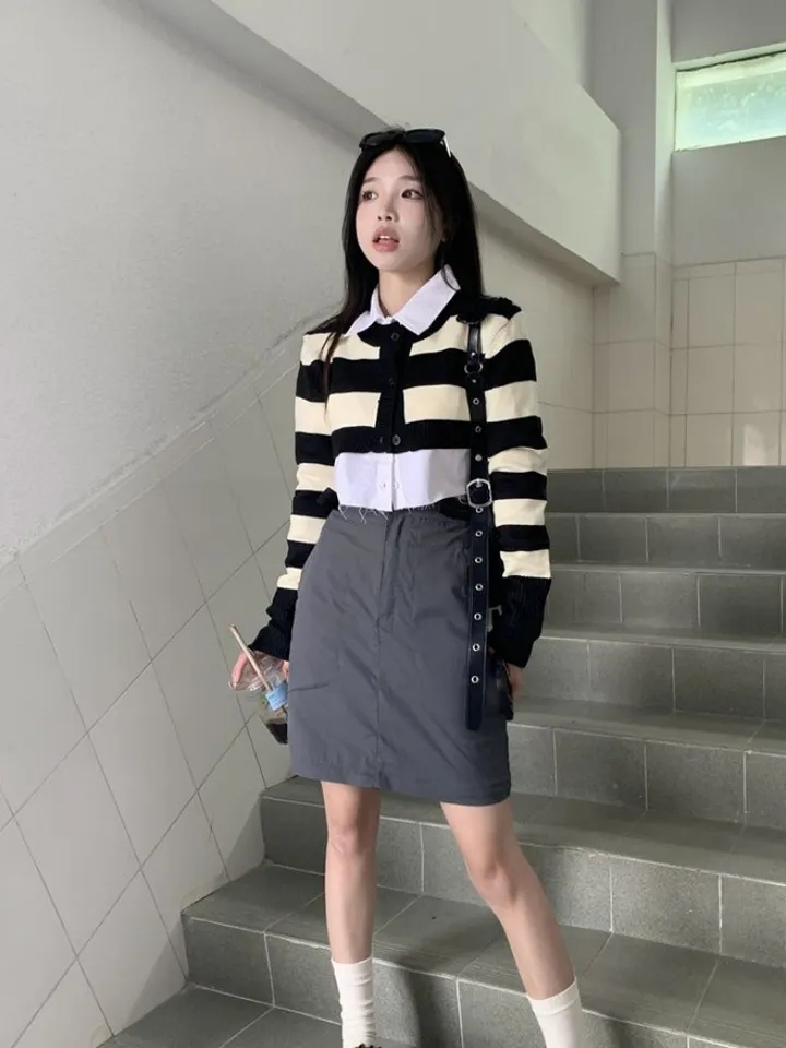 3PCS Plaid Patchwork Camisole + Pleated Skirt + Long Sleeve Shirt