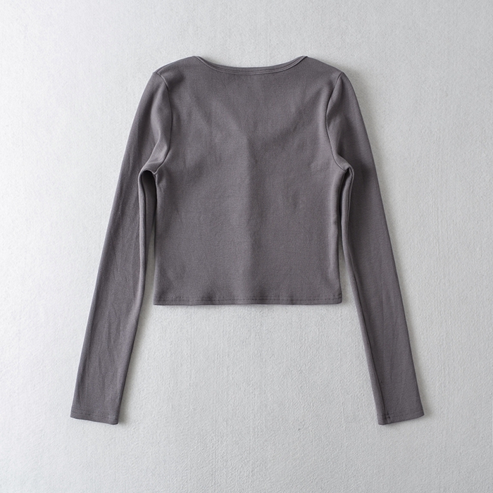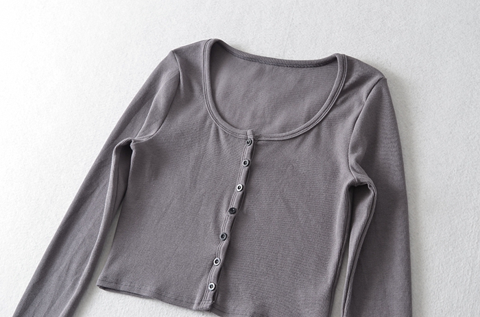 2PCS Pink Ribbed Button Long Sleeve Crop Top + Shorts