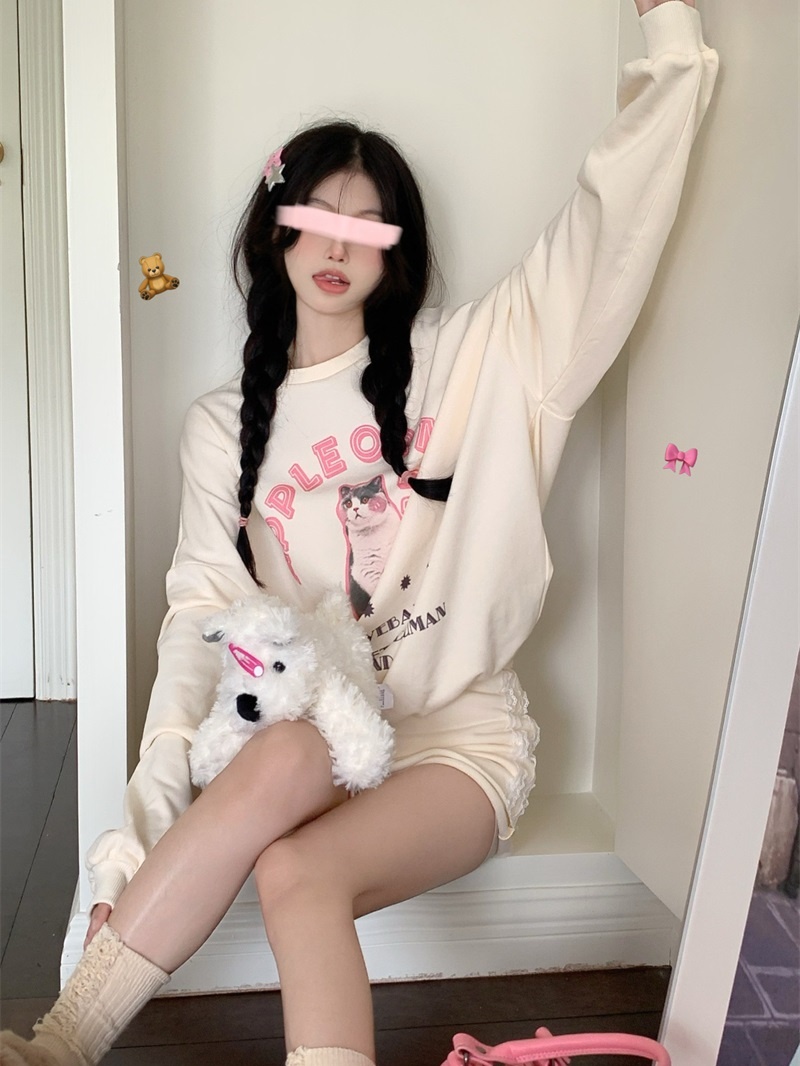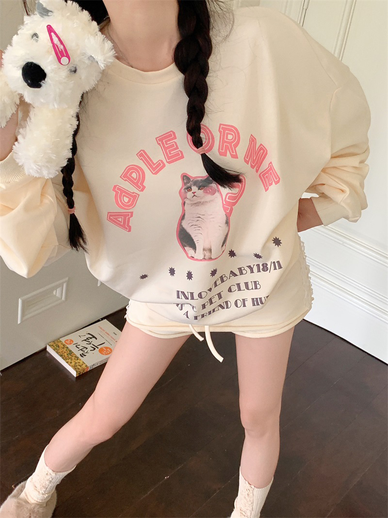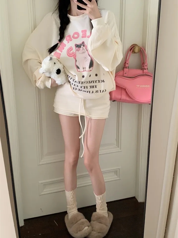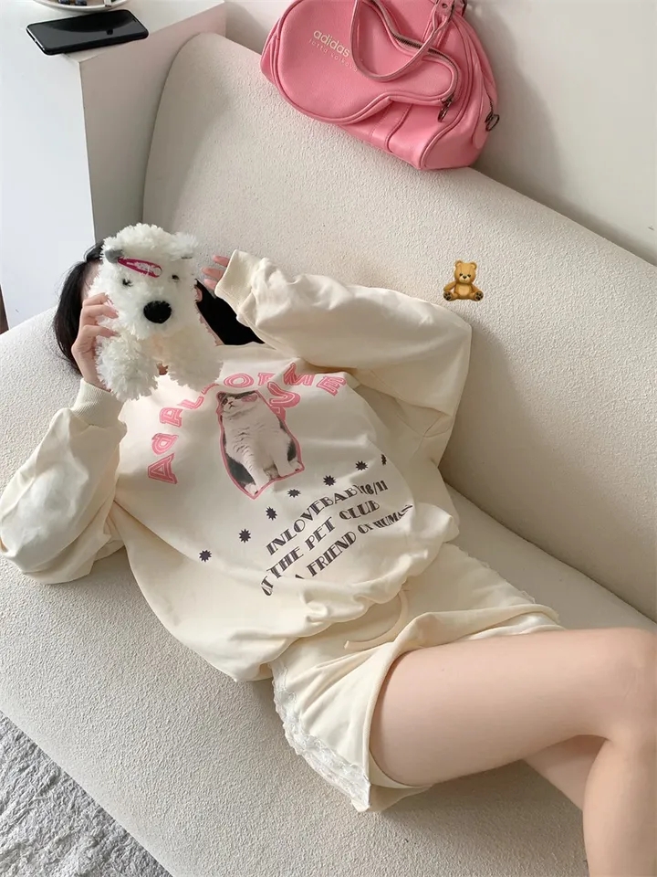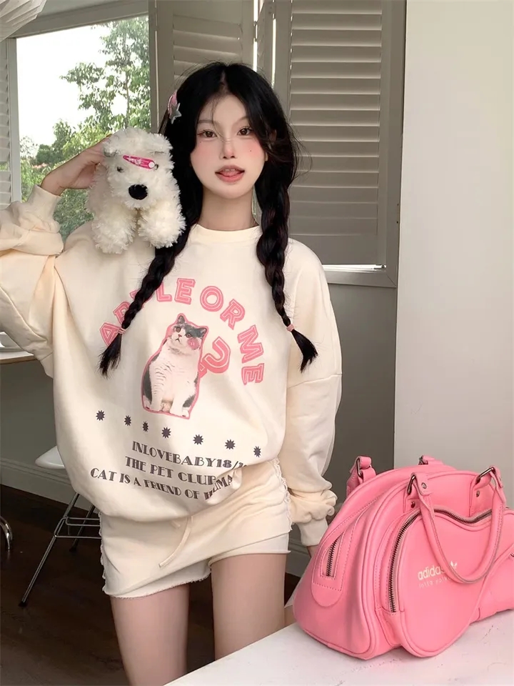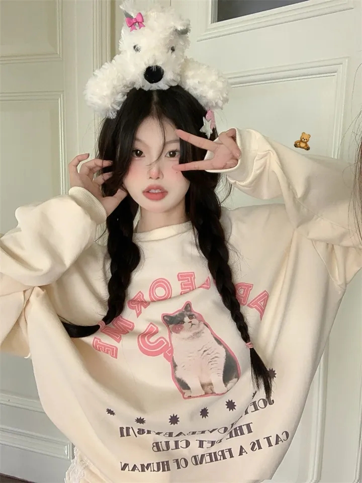 Cat Question Mark Graphic Print Loose Sweatshirt