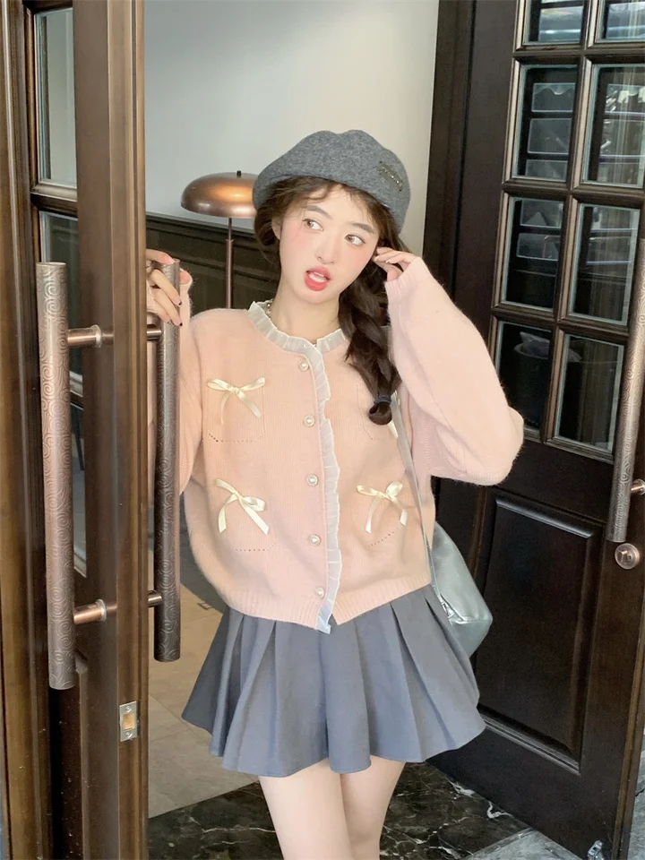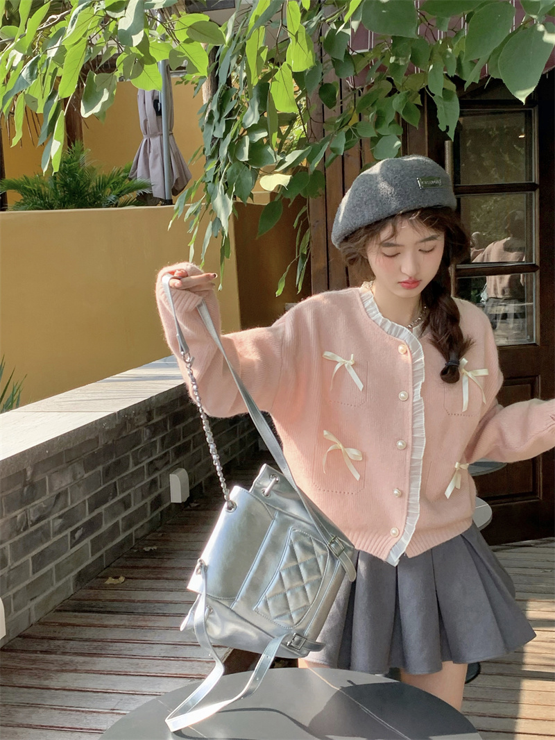 Pink Flower Crochet Top + Flare Sleeve Sweater