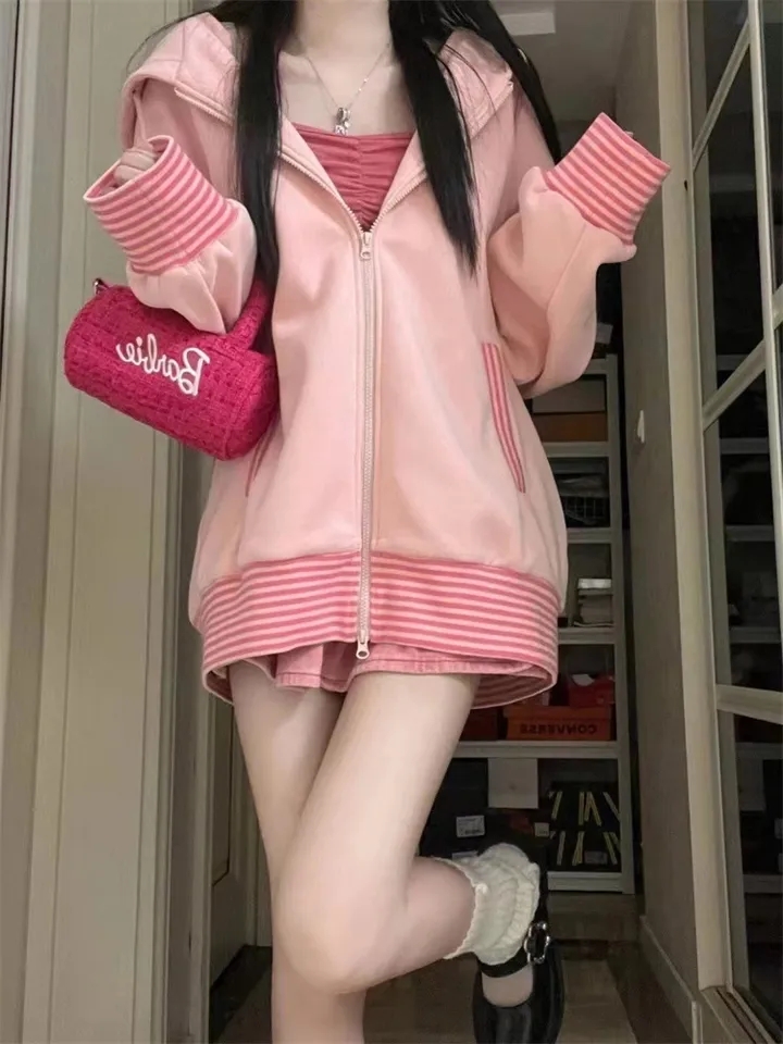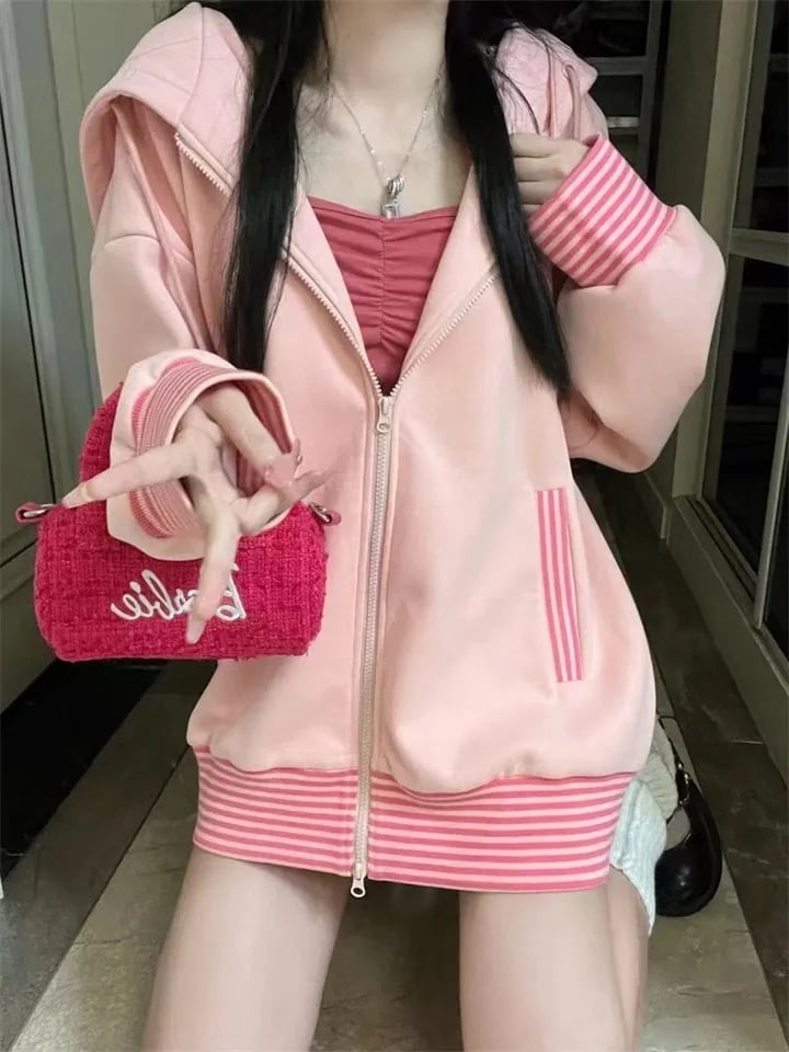 2PCS White Soft Zipper Hoodie + Split Mini Skirt