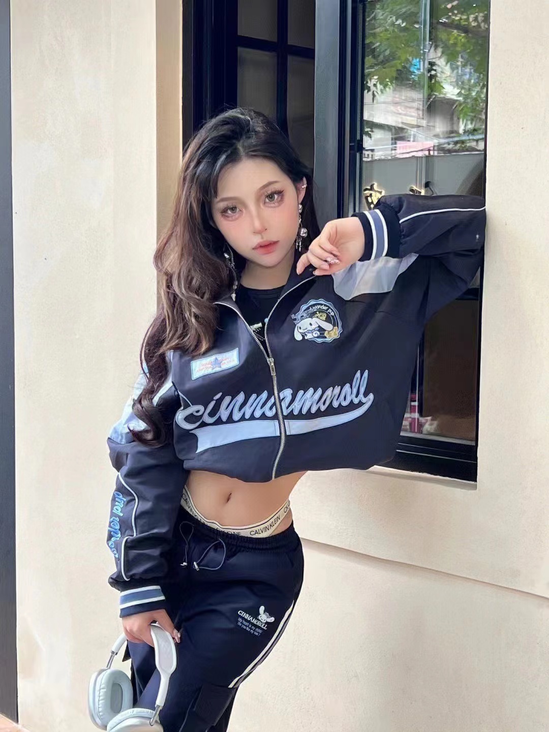 Grey Bow Embroidery Zipper Jacket