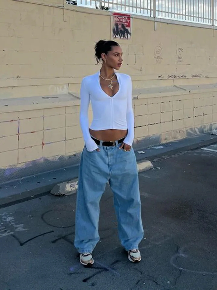 2PCS White Soft Zipper Hoodie + Split Mini Skirt
