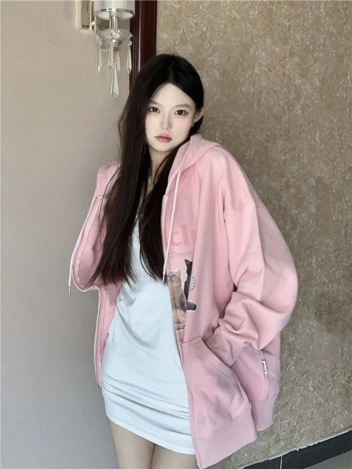 Pink Lace Ruffle Hem Cropped Zipper Hoodie
