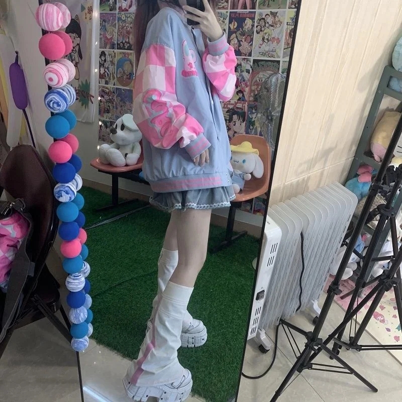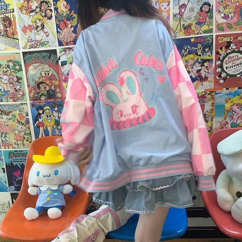 Blue & Pink Rabbit Patchwork Varsity Jacket
