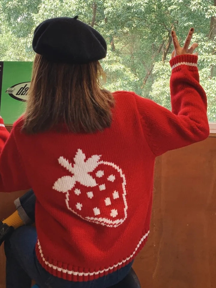 Red Strawberry Zipper Jacket