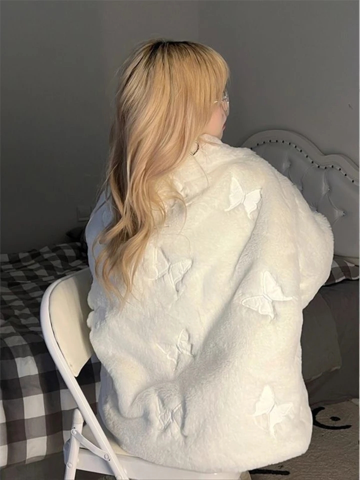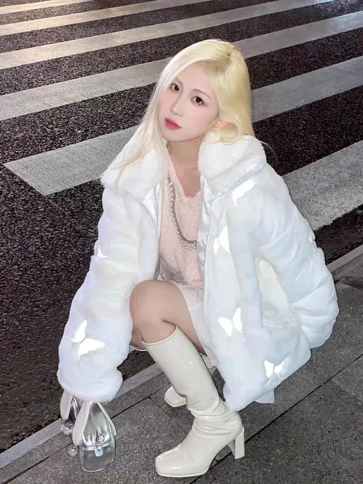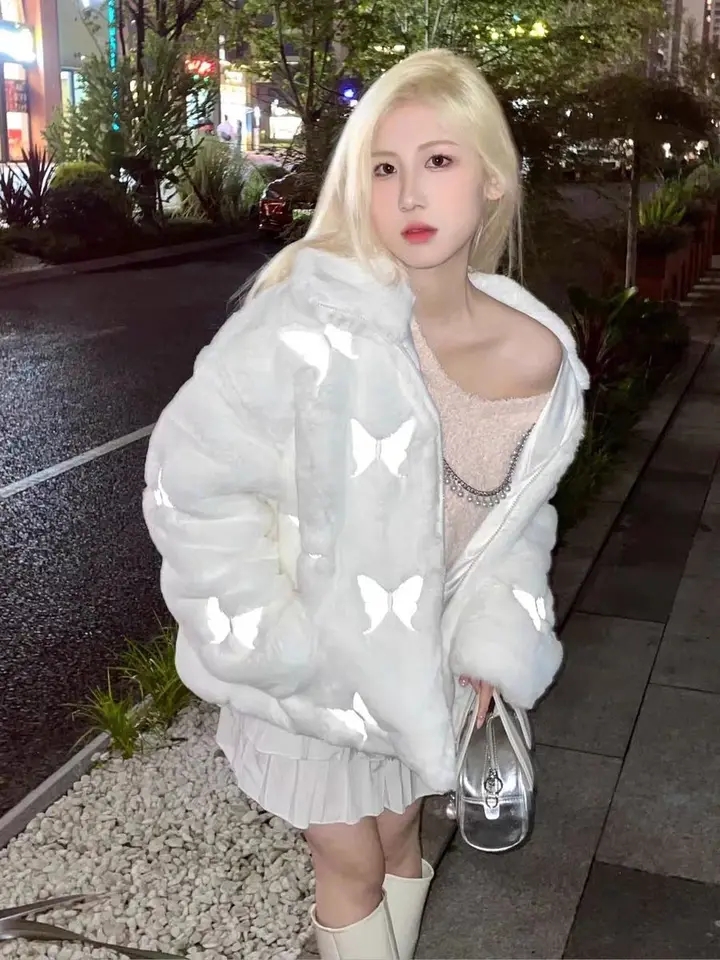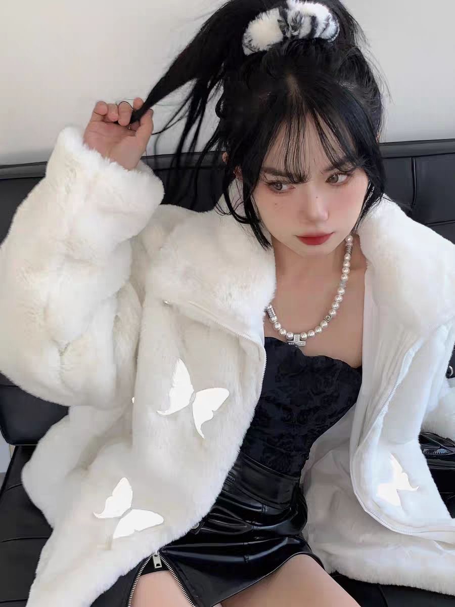 2PCS White Soft Zipper Hoodie + Split Mini Skirt