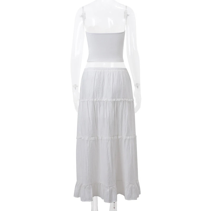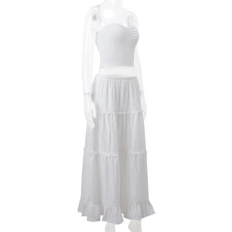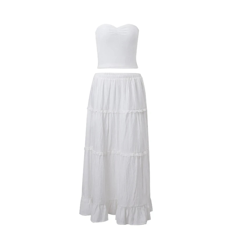 2PCS Strapless Tank Top + Pleated Long Skirt