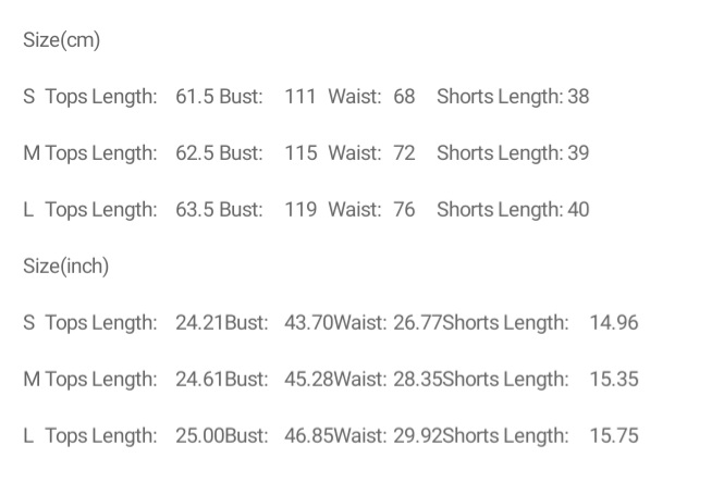 100% Brand New and High Quality . Material: Polyester, Cotton. Size: As shown on size chart. Includes: Top + Short.