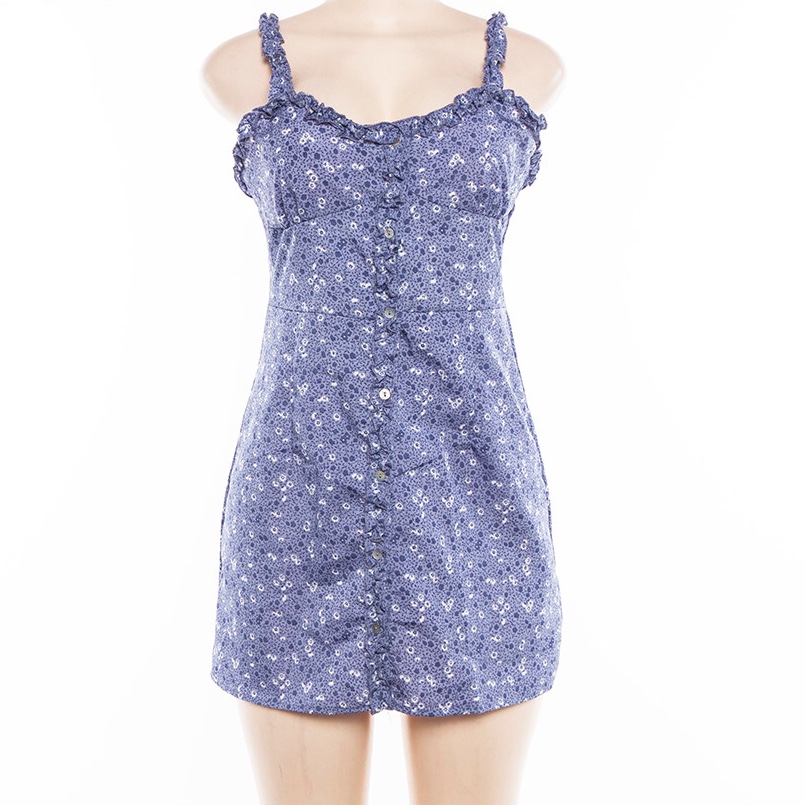 Cute Summer Fit Flare Sexy Flower Print Button Dress Kawaii Korean Japanese Harajuku Chinese Retro Streetwear Aesthetic Fashion