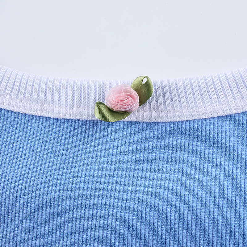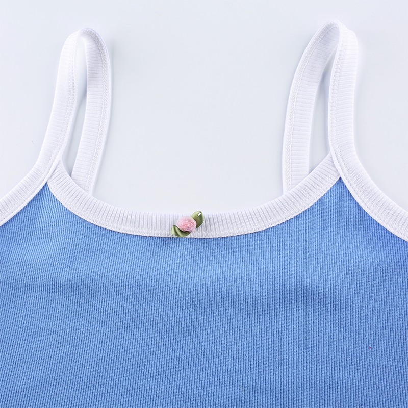 Cute Sexy Flower Rose Color Contrast Crop Top Camisole Shirt Tee T-shirt E-Girl Kawaii Korean Japanese Harajuku Chinese Retro Streetwear Aesthetic