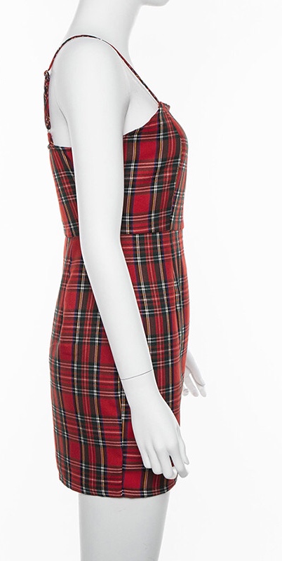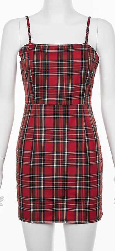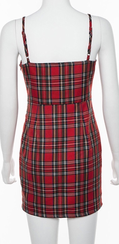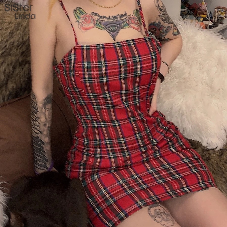 Cute Sexy Red Plaid Checkered Mini Dress Party Bodycon E-Girl Kawaii Korean Japanese Harajuku Chinese Retro Streetwear Aesthetic