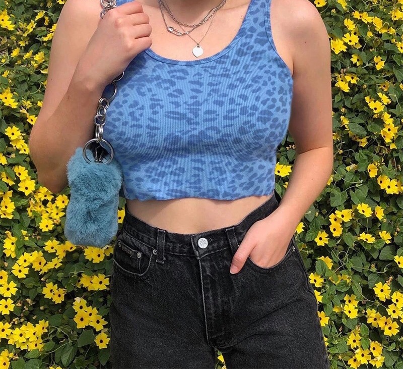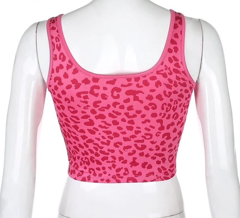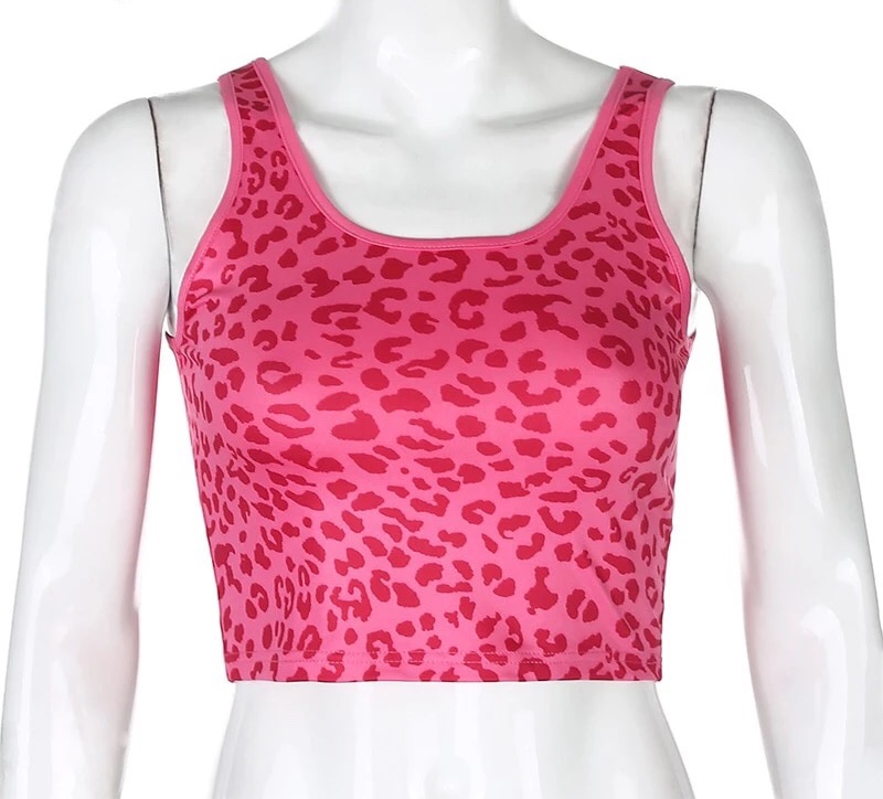 Cute Leopard Print 90s Goth Tank Crop Top Camisole Shirt Tee T-shirt E-Girl Kawaii Korean Japanese Harajuku Chinese Retro Streetwear Aesthetic