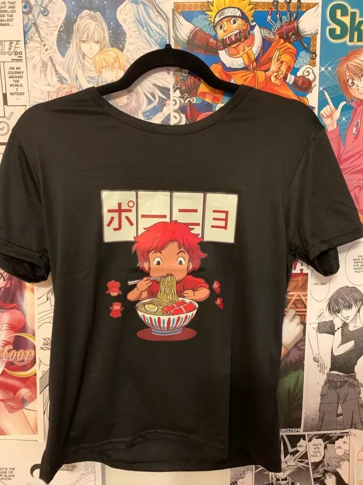 Cute Vintage Anime Noodle Ramen Cartoon Funny Short Sleeve Shirt Tee T-shirt E-Girl Kawaii Korean Japanese Harajuku Chinese Retro Streetwear Aesthetic
