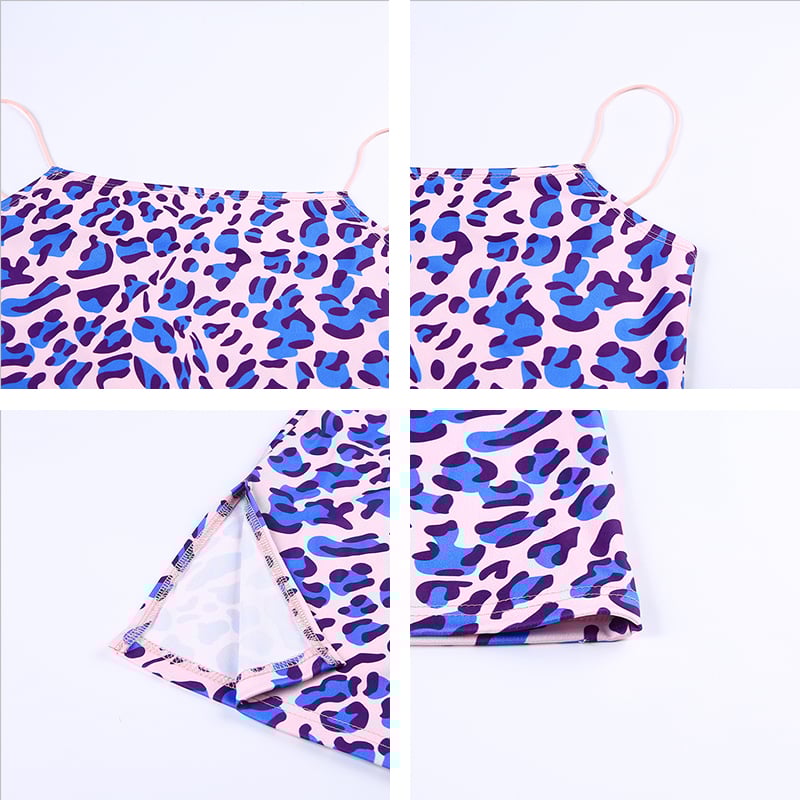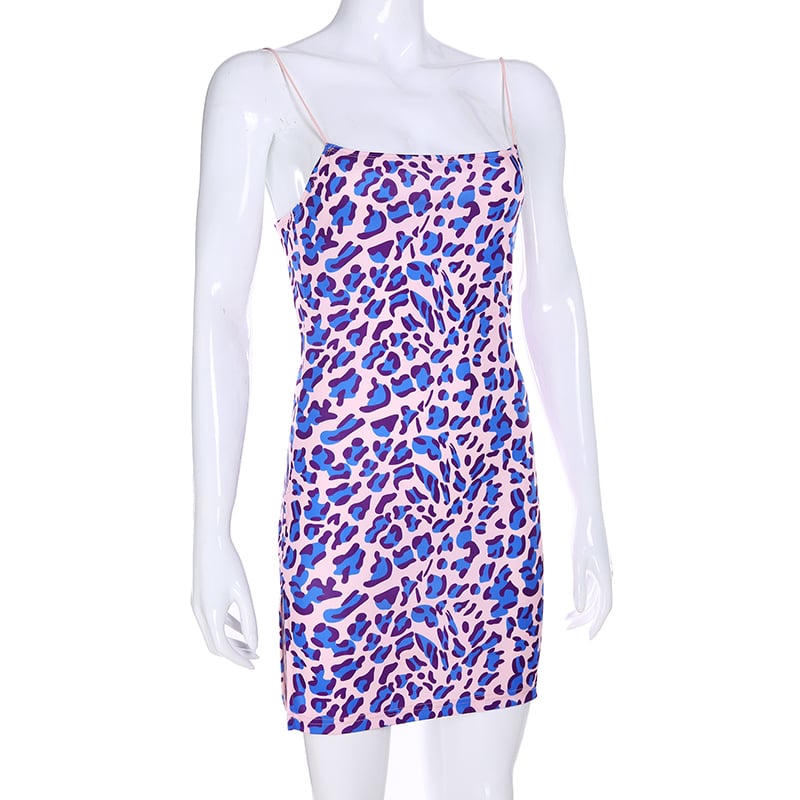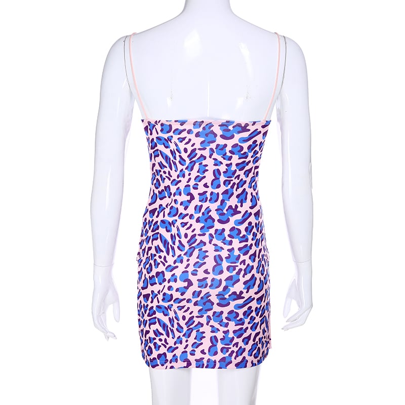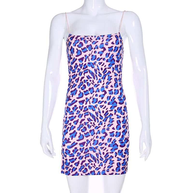 Cute Purple Leopard Spaghetti Strap Backless Mini Dress Party E-Girl Kawaii Korean Japanese Harajuku Chinese Retro Streetwear Aesthetic