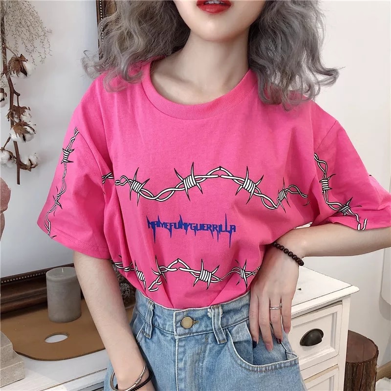 Cute Casual Vintage Punk Goth Print Crop Top Short Sleeve Shirt Tee T-shirt E-Girl Kawaii Korean Japanese Harajuku Chinese Retro Streetwear Aesthetic