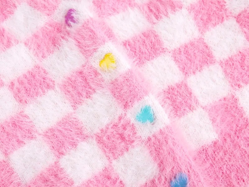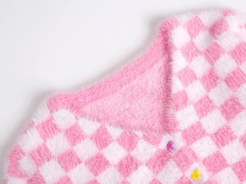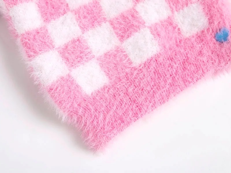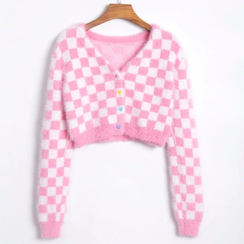 Cute Plaid Checkered Crop Sweater Cardigan Top Long Sleeve Knit E-Girl Kawaii Korean Japanese Harajuku Chinese Retro Streetwear Aesthetic