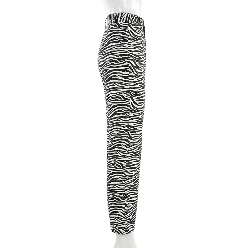 Cute Zebra Animal Print Elegant Pant High Waisted Trouser Bottoms T E-Girl Kawaii Korean Japanese Harajuku Chinese Retro Streetwear Aesthetic
