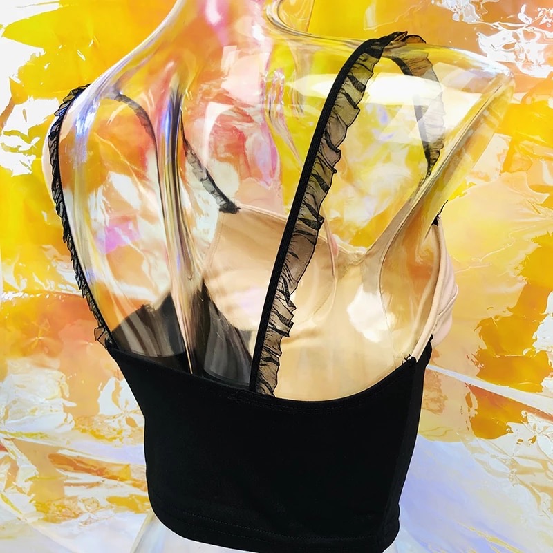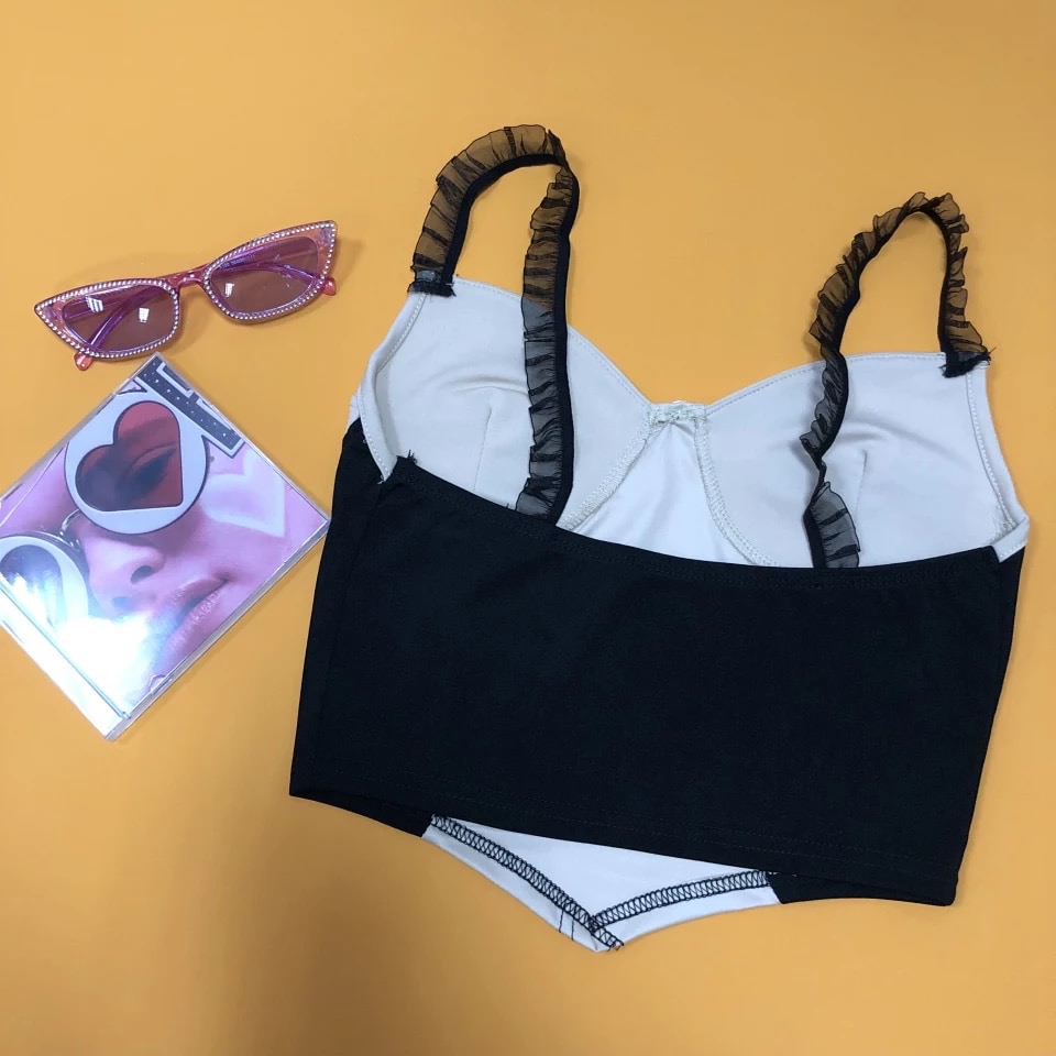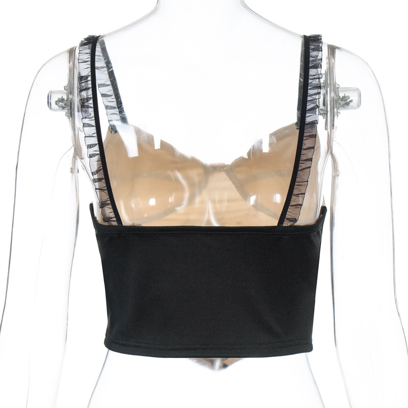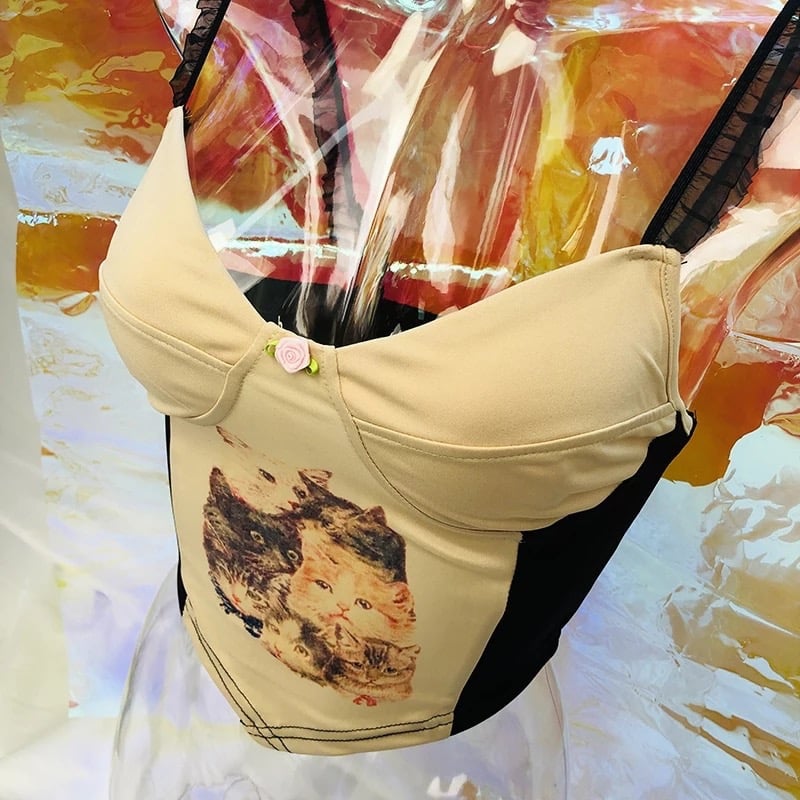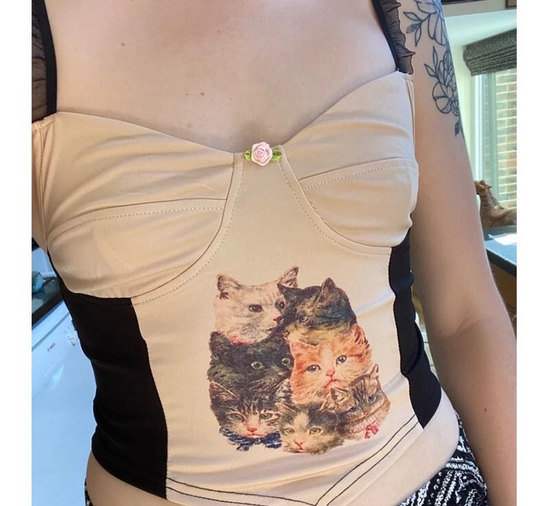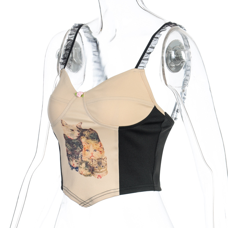 Cute Cat Graphic Vintage Lace Spaghetti Strap Crop Top Shirt Tee T-shirt E-Girl Kawaii Korean Japanese Harajuku Chinese Retro Streetwear Aesthetic