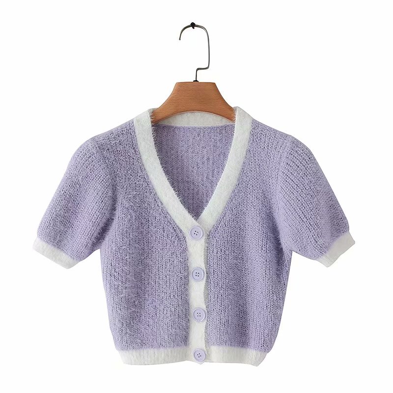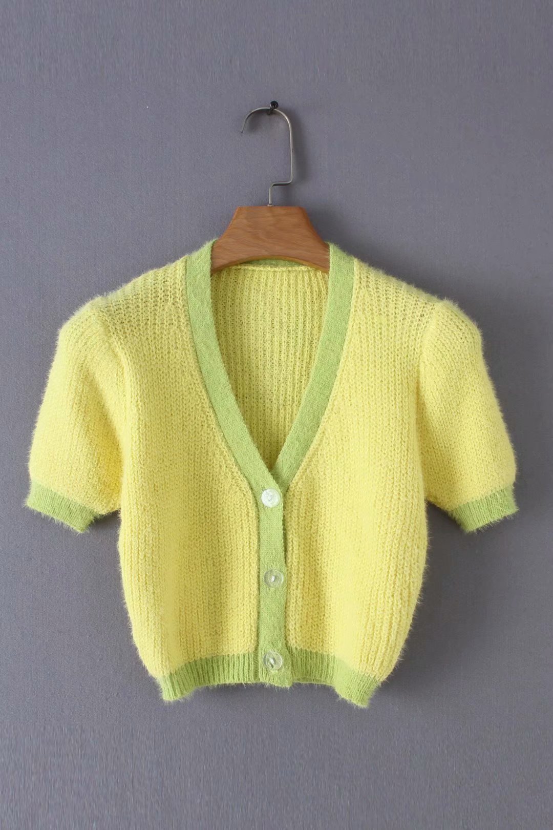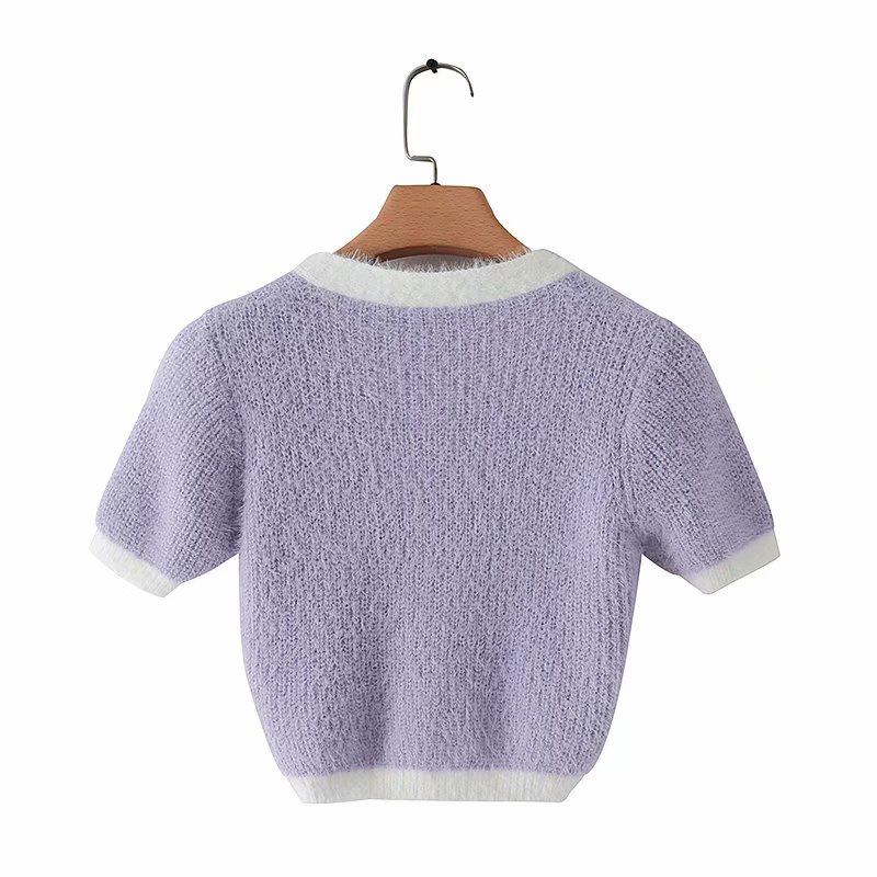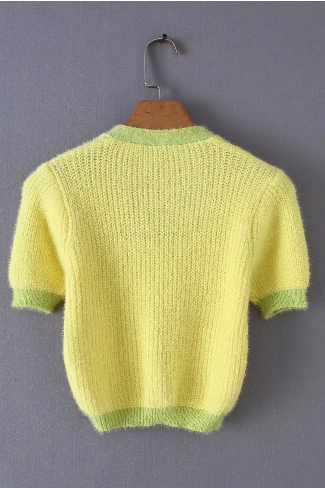 Cute Vintage Sweater Cardigan Knit Crop Top Short Sleeve Shirt Tee T-shirt E-Girl Kawaii Korean Japanese Harajuku Chinese Retro Streetwear Aesthetic
