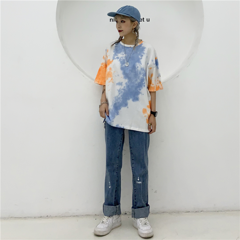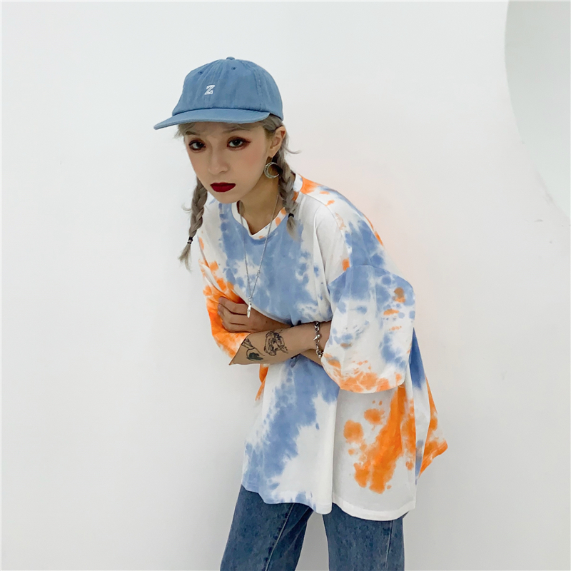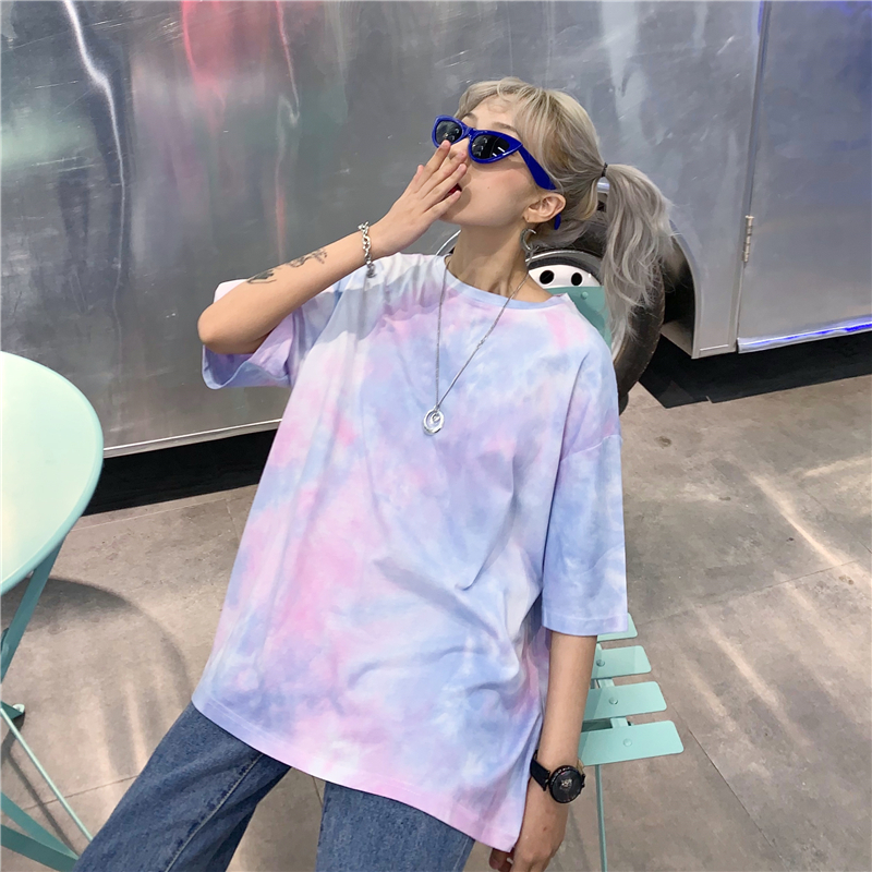 Cute Tie Dyed Hip Hop Casual Punk Goth Loose Oversized Short Sleeve Shirt Tee T-shirt E-Girl Kawaii Korean Japanese Harajuku Chinese Retro Streetwear