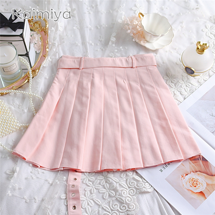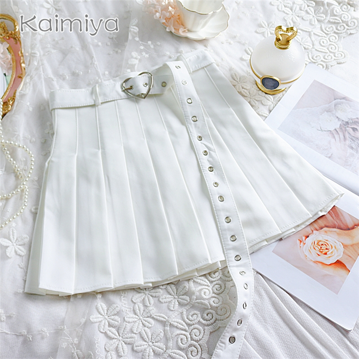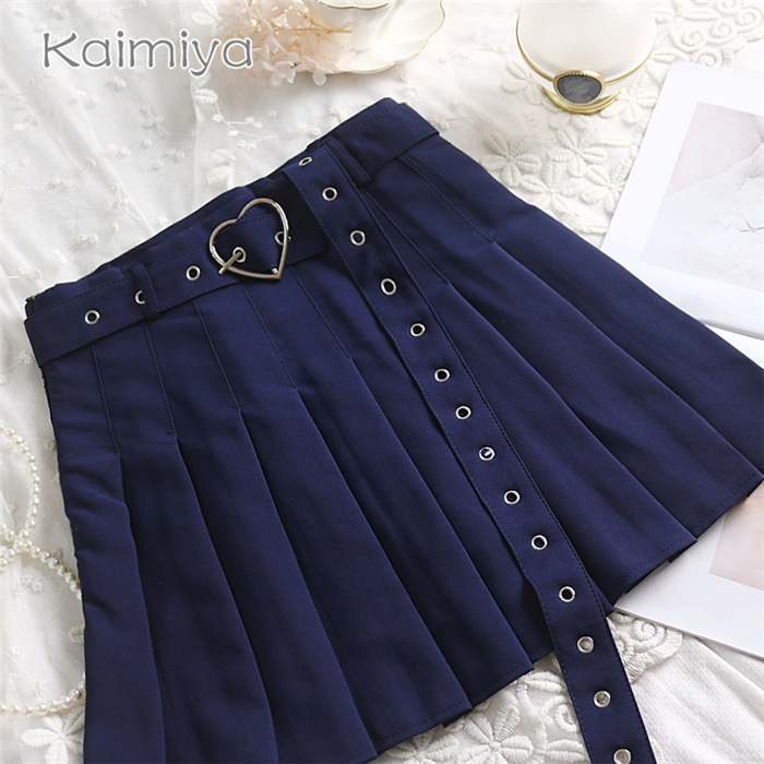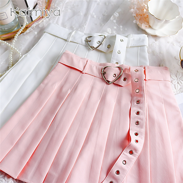 Cute Preppy Summer Pleated Heart Shape Belt High Waist Mini Skirt Bottom E-Girl Kawaii Korean Japanese Harajuku Chinese Retro Streetwear Aesthetic