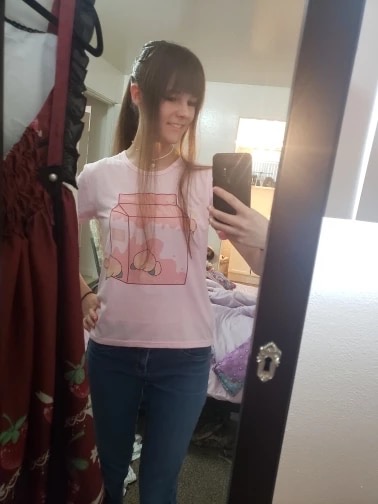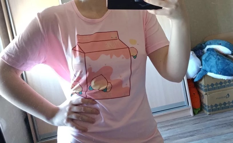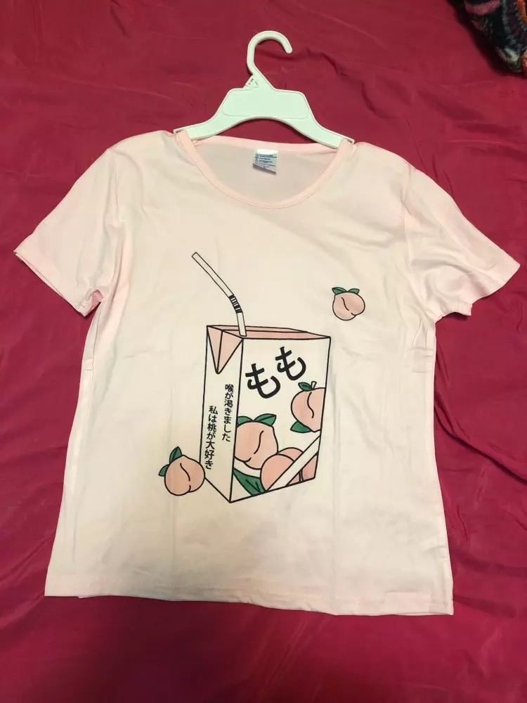 Cute Pink Peach Milk Carton Pastel Print Short Sleeve Shirt Tee T-shirt E-Girl Kawaii Korean Japanese Harajuku Retro Streetwear Aesthetic