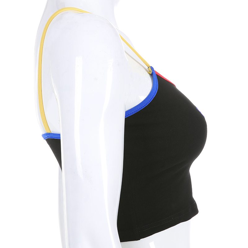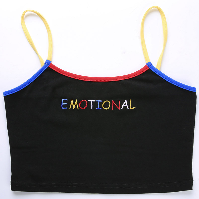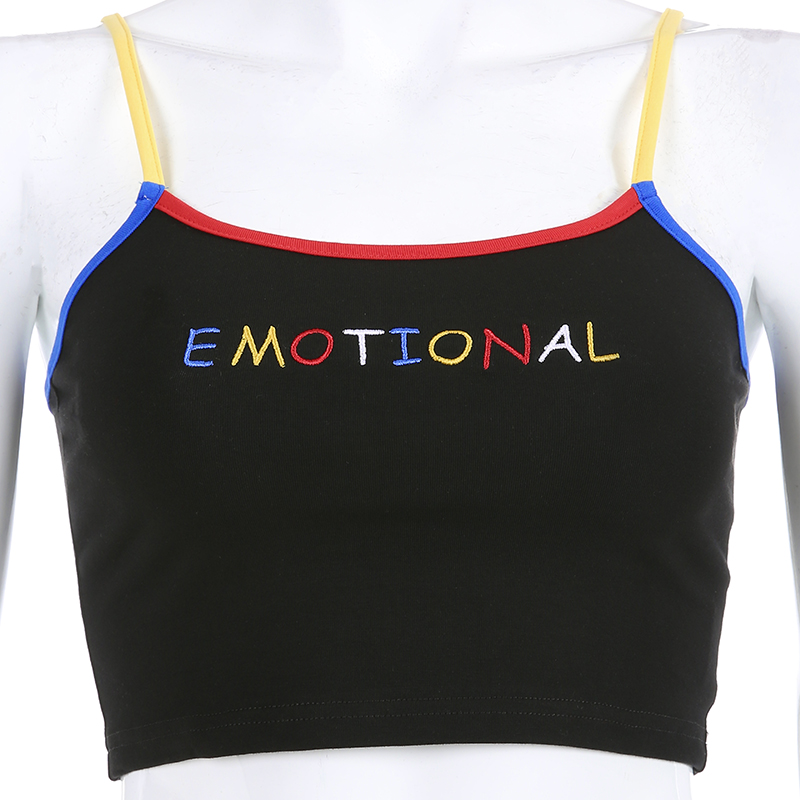 Cute Black Emotional Embroidery Crop Top Camisole Spaghetti Tank Shirt Tee T-shirt E-Girl Kawaii Korean Japanese Harajuku Retro Streetwear Aesthetic