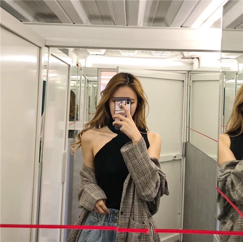 Cute Halter Neck Off Shoulder Crop Top Bodycon T-shirt Tee Shirt Blouse E-Girl Kawaii Korean Japanese Harajuku Retro Streetwear Aesthetic