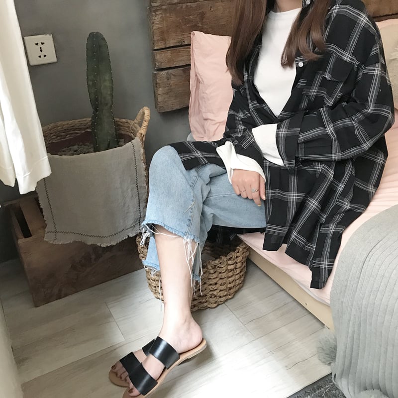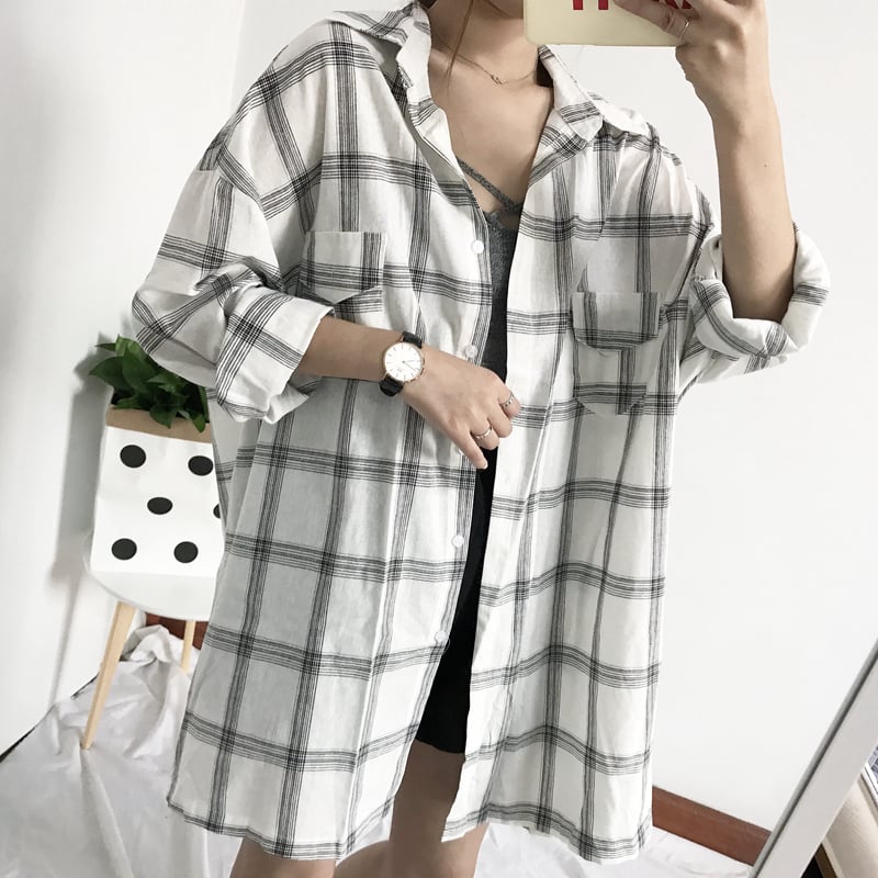 Cute Casual Plaid Flannel Loose Oversized Long Sleeve Shirt Top Boyfriend Baggy E-Girl Kawaii Korean Japanese Harajuku Retro Streetwear