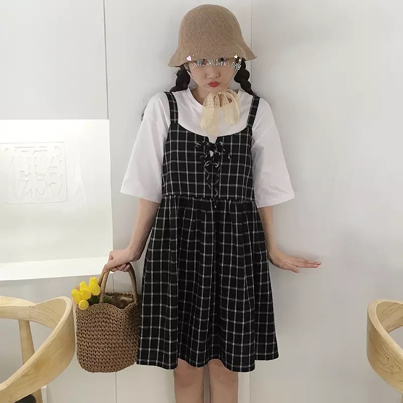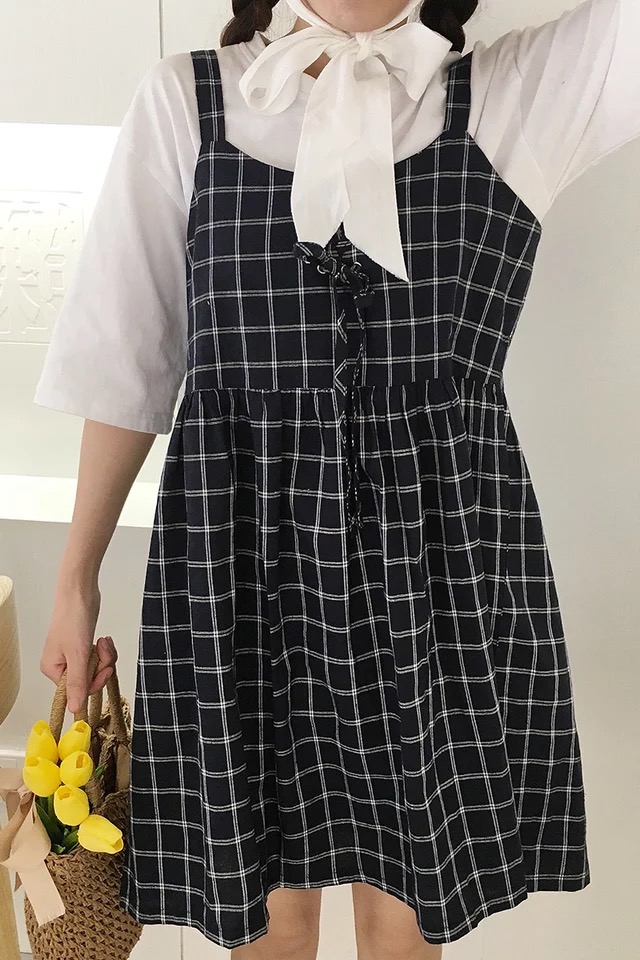Cute Summer Preppy Loose Casual Plaid Checkered Tank Dress E-Girl Kawaii Korean Japanese Harajuku Retro Streetwear