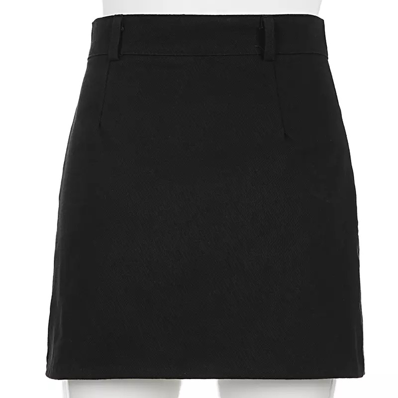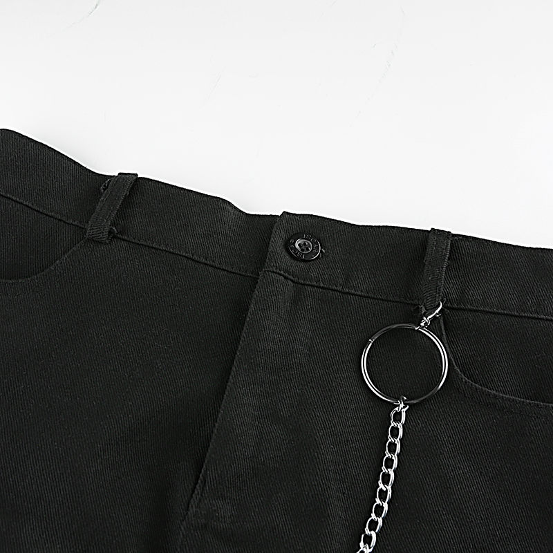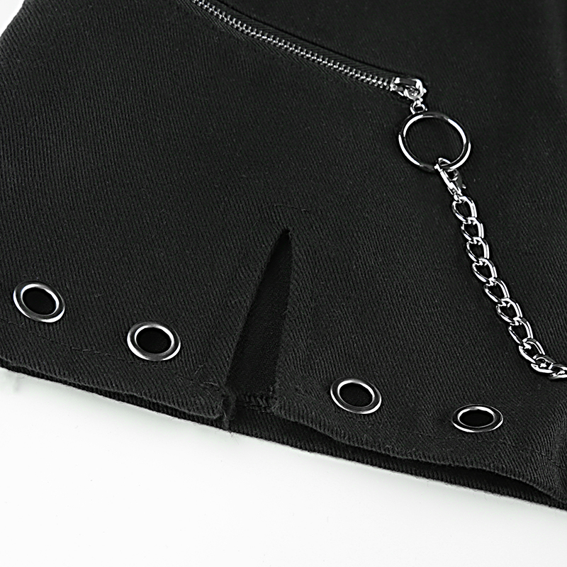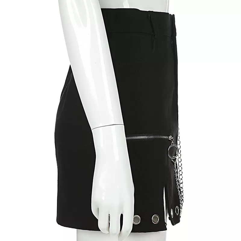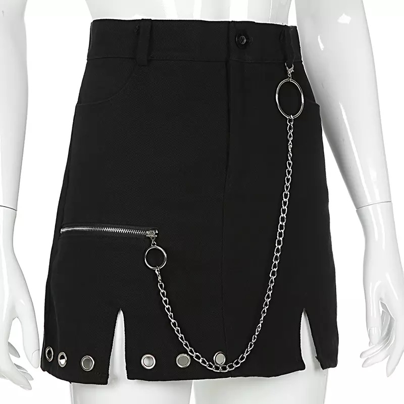 Sexy Black Goth Punk Demin Metal Chain Patchwork High Waisted Mini Skirt Zipper Split A-line E-Girl Kawaii Korean Japanese Harajuku Retro Streetwear