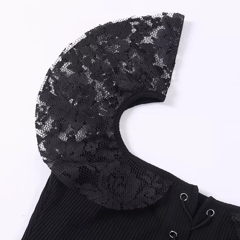 Sexy Black Goth Punk Lace Mesh Hallowout Eyelet Backless Transparent Patchwork T-shirt Top Corset E-Girl Kawaii Korean Japanese Harajuku Streetwear