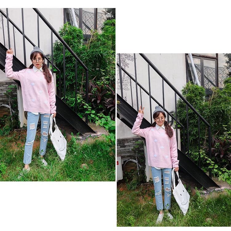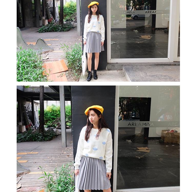 Cute Pastel Cloud Winter Autumn Loose Oversized Casual Knit Sweater Sweatshirt Pullover Jumper Shirt E-Girl Kawaii Korean Japanese Harajuku Streetwear