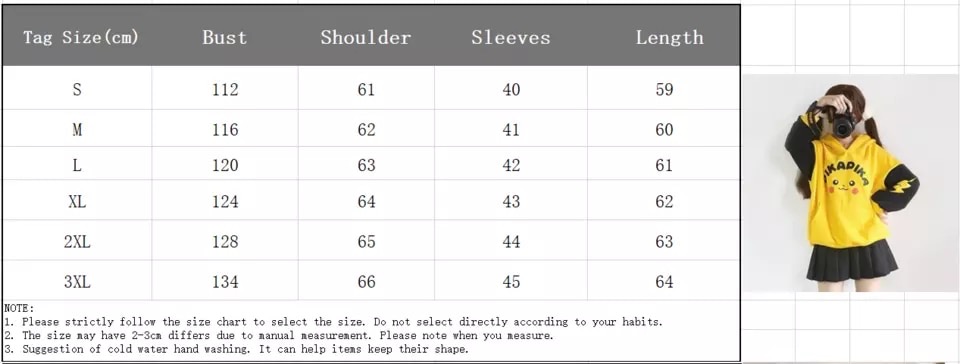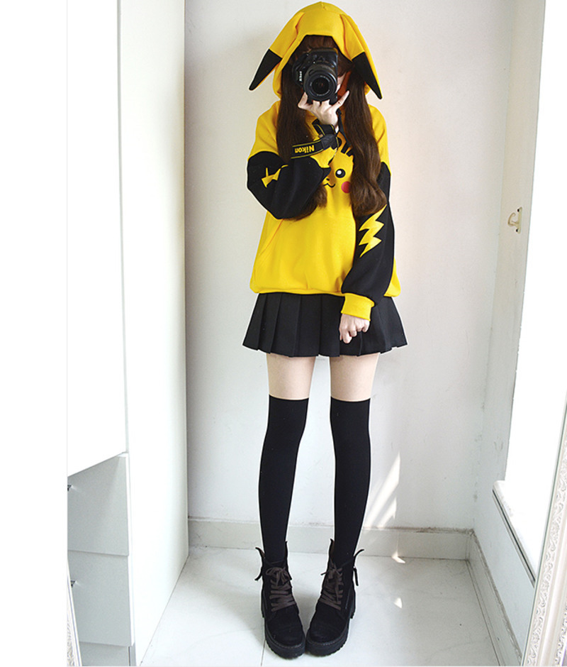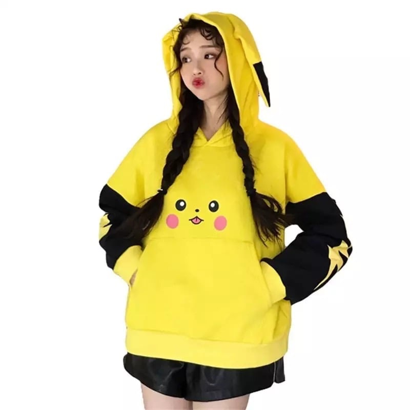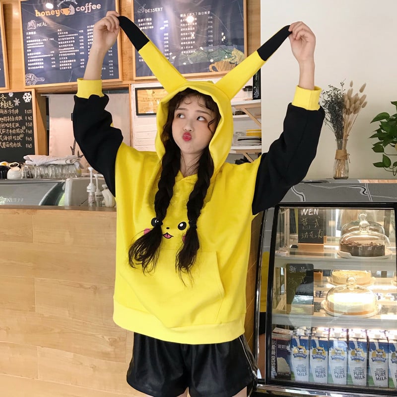 Cute Yellow Pikachu Anime Cartoon Long Ears Oversized Casual Hoodie Sweater Sweatshirt Pullover E-Girl Kawaii Korean Japanese Harajuku Streetwear