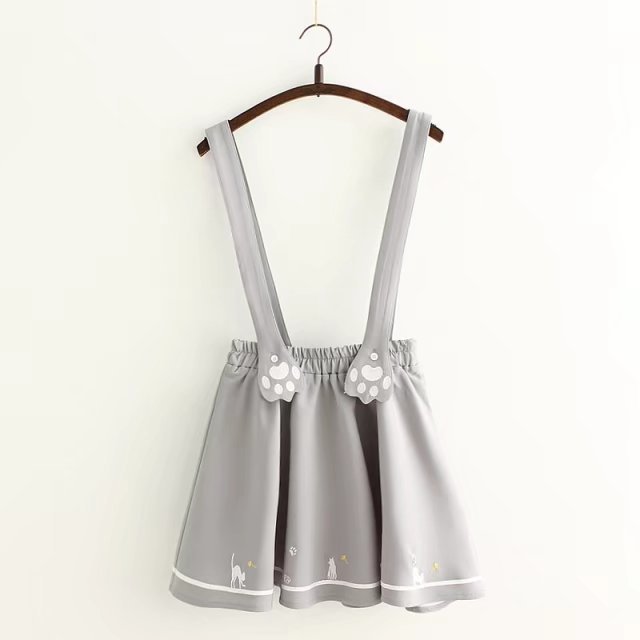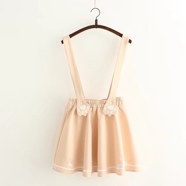 Cute Cartoon Sweet Cat Dog Paw Embroidery Skater Skirt Strap Suspenders Mini Skirt E-Girl Kawaii Korean Japanese Harajuku Streetwear