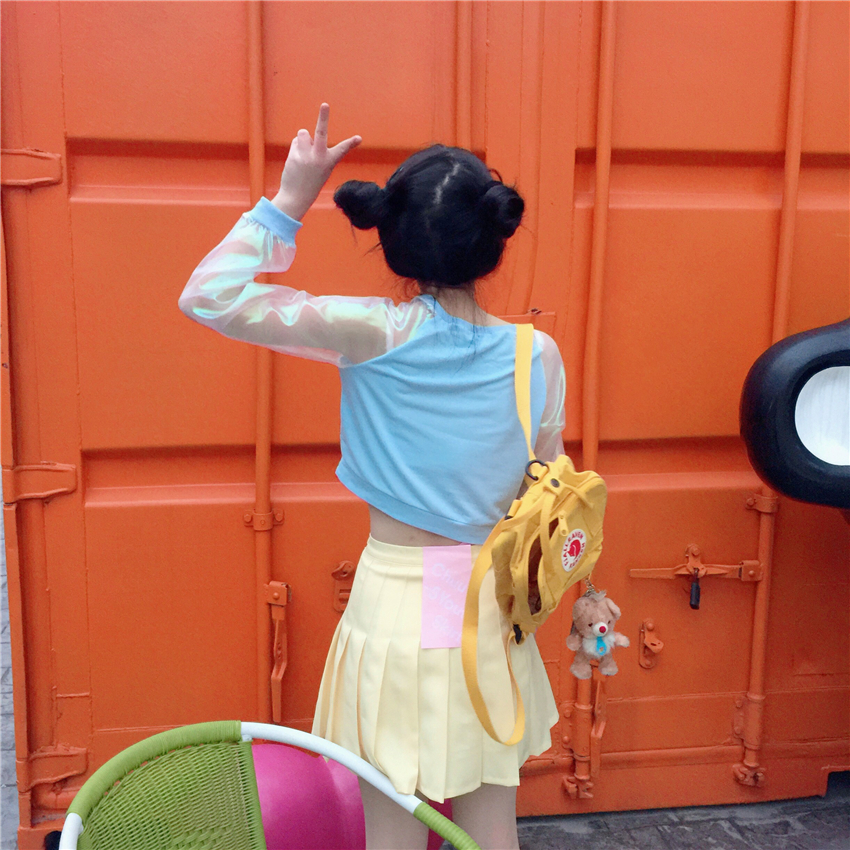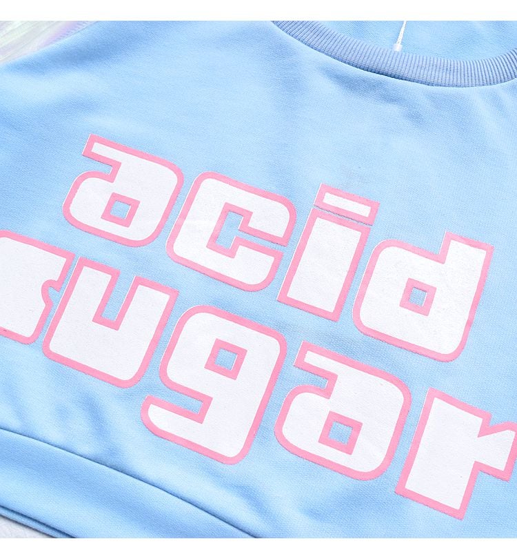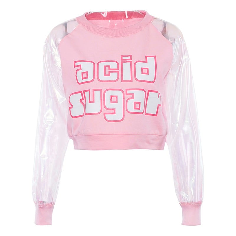 Pastel Pink Acid Holographic Laser Transparent Crop Top Long Sleeve Tee Shirt T-shirt Top Sweatshirt E-Girl Kawaii Korean Japanese Harajuku Streetwear