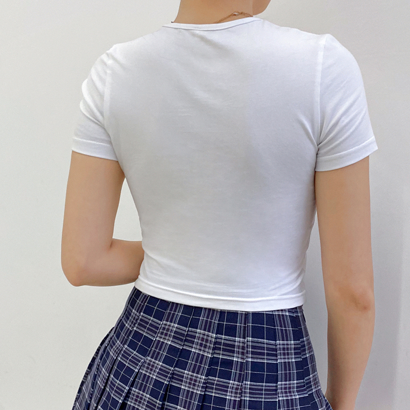 Heart Cartoon Print Short Sleeve Tee Shirt T-shirt Top Retro Vintage Causal Summer E-Girl Kawaii Korean Japanese Harajuku Streetwear