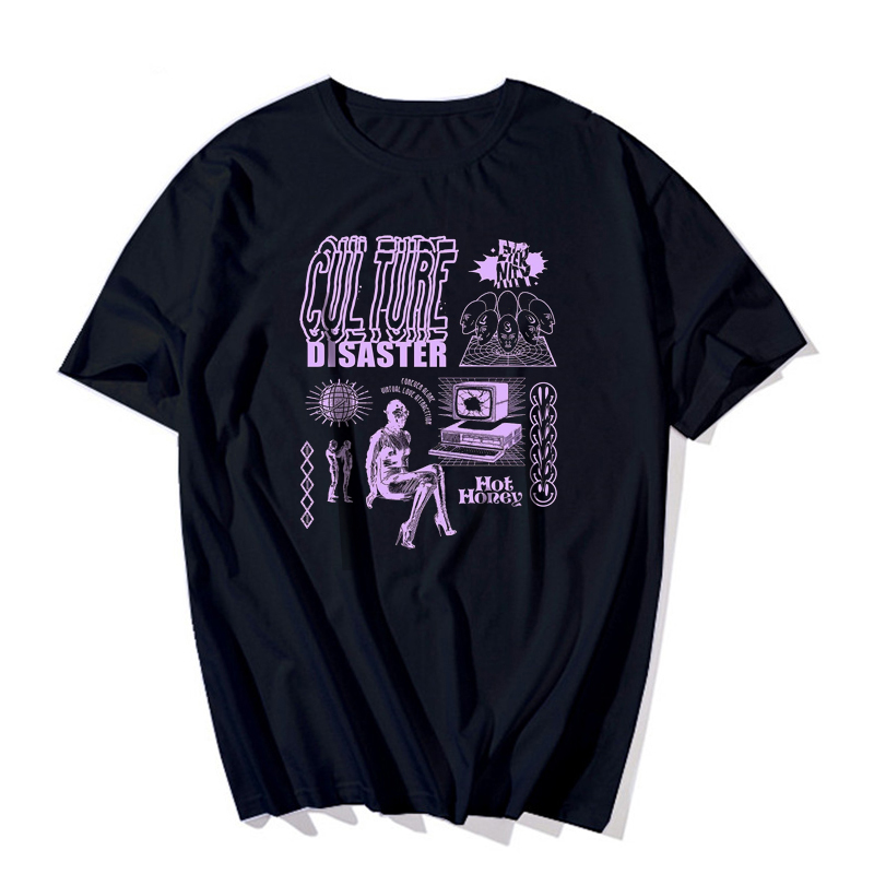 Retro Vintage Graffiti Print Short Sleeve Shirt T-shirt Top Hiphop Goth Punk Summer Casual E-Girl Kawaii Korean Japanese Harajuku Streetwear
