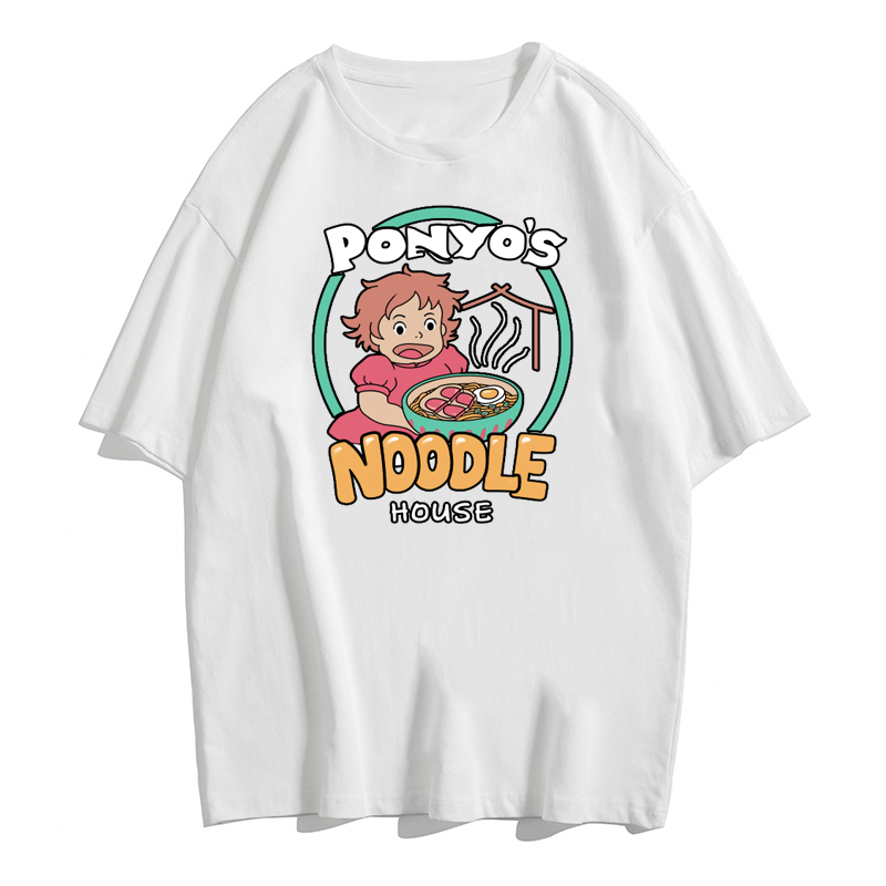 Vintage Anime Ramen Noodle Cartoon Print Loose White Short Sleeve Short T-shirt Top Causal Summer E-Girl Kawaii Korean Japanese Harajuku Streetwear